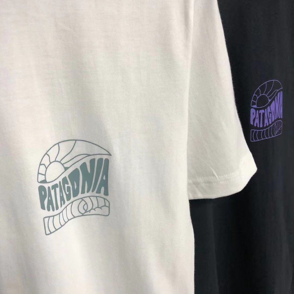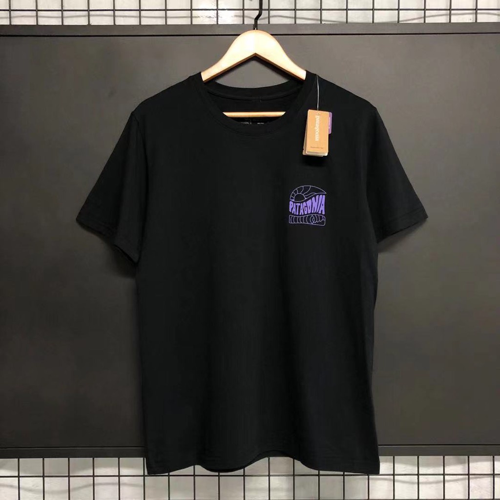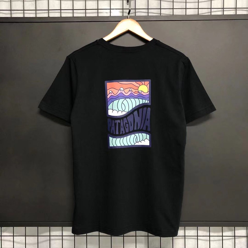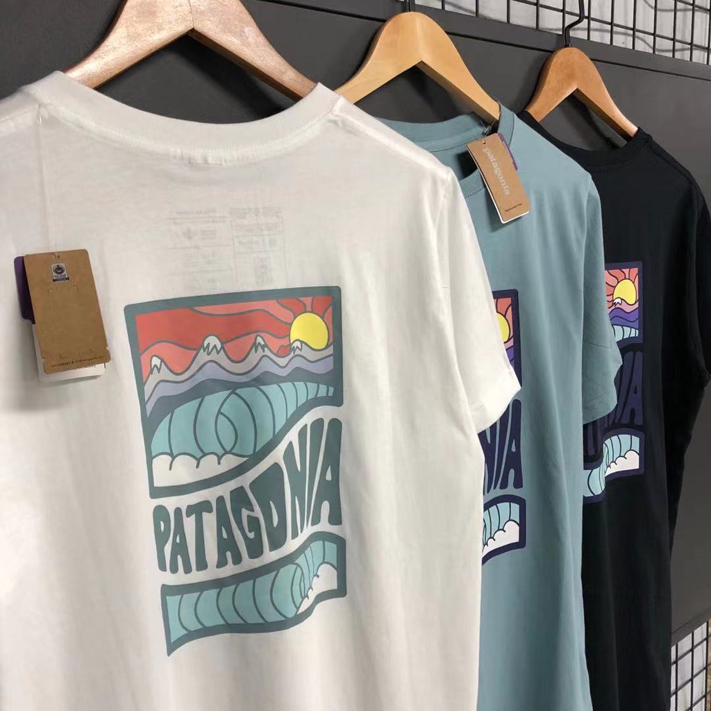 เสื้อแขนสั้นผ้าฝ้ายพิมพ์ลายกราฟฟิตี้คลื่นสามสีด้านหน้าและหลังเทรนด์อเมริกันแขนสั้นสําหรับผู้ชาย
