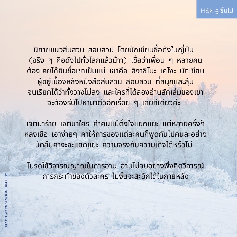 ? นิยายแนวสืบสวน สอบสวน โดยนักเขียนชื่อดังในญี่ปุ่น (จริง ๆ คือดังไปทั่วโลกแล้วน้าา) เชื่อว่าเพื่อน ๆ หลายคนต้องเคยได้ยินชื่อเขาเป็นแน่ เขาคือ ฮิงาชิโนะ เคโงะ นักเขียนผู้อยู่เบื้องหลังหนังสือสืบสวน สอบสวน ที่สนุกและลุ้นจนเรียกได้ว่าทั้งวาง