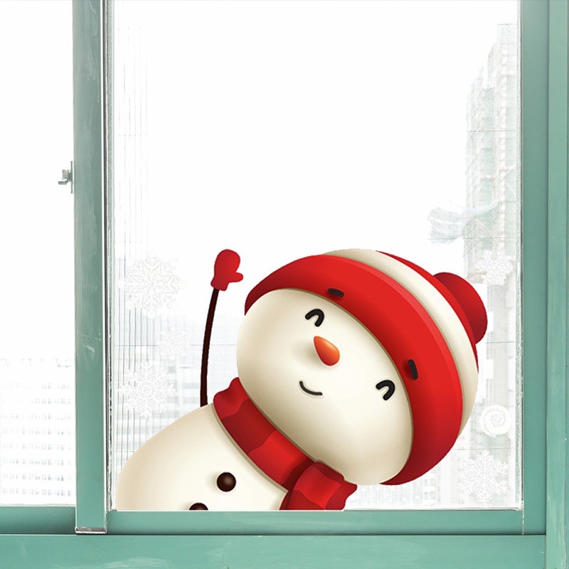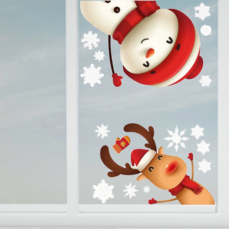 สติ๊กเกอร์พีวีซีติดตกแต่งผนังบ้านลายคริสต์มาสขนาดใหญ่ซานตาเกล็ดเกล็ดปี