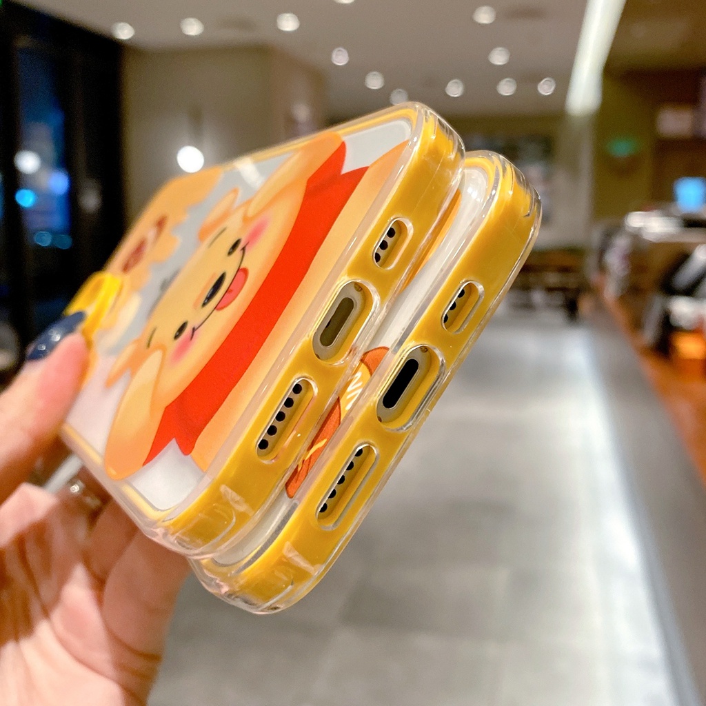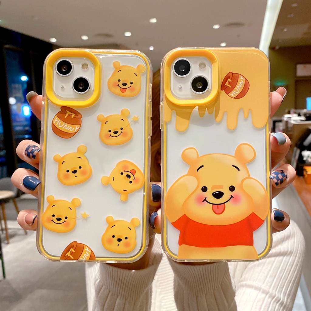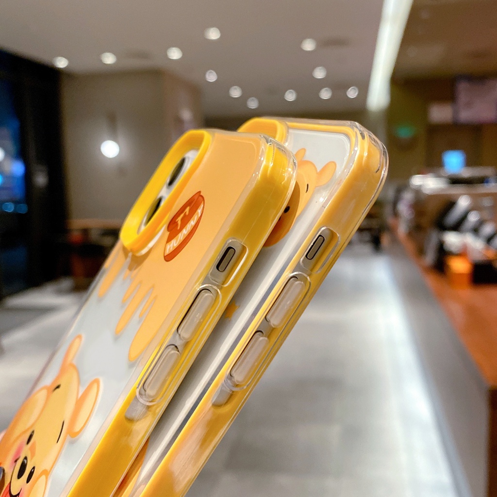 โปร่งใสน่ารักหมีสีเหลืองสําหรับIphone case 17 air 15 16 14 6 6s 7 8 plus XR 11 12 13 pro max 2 in 1 super drop resistance Thicken