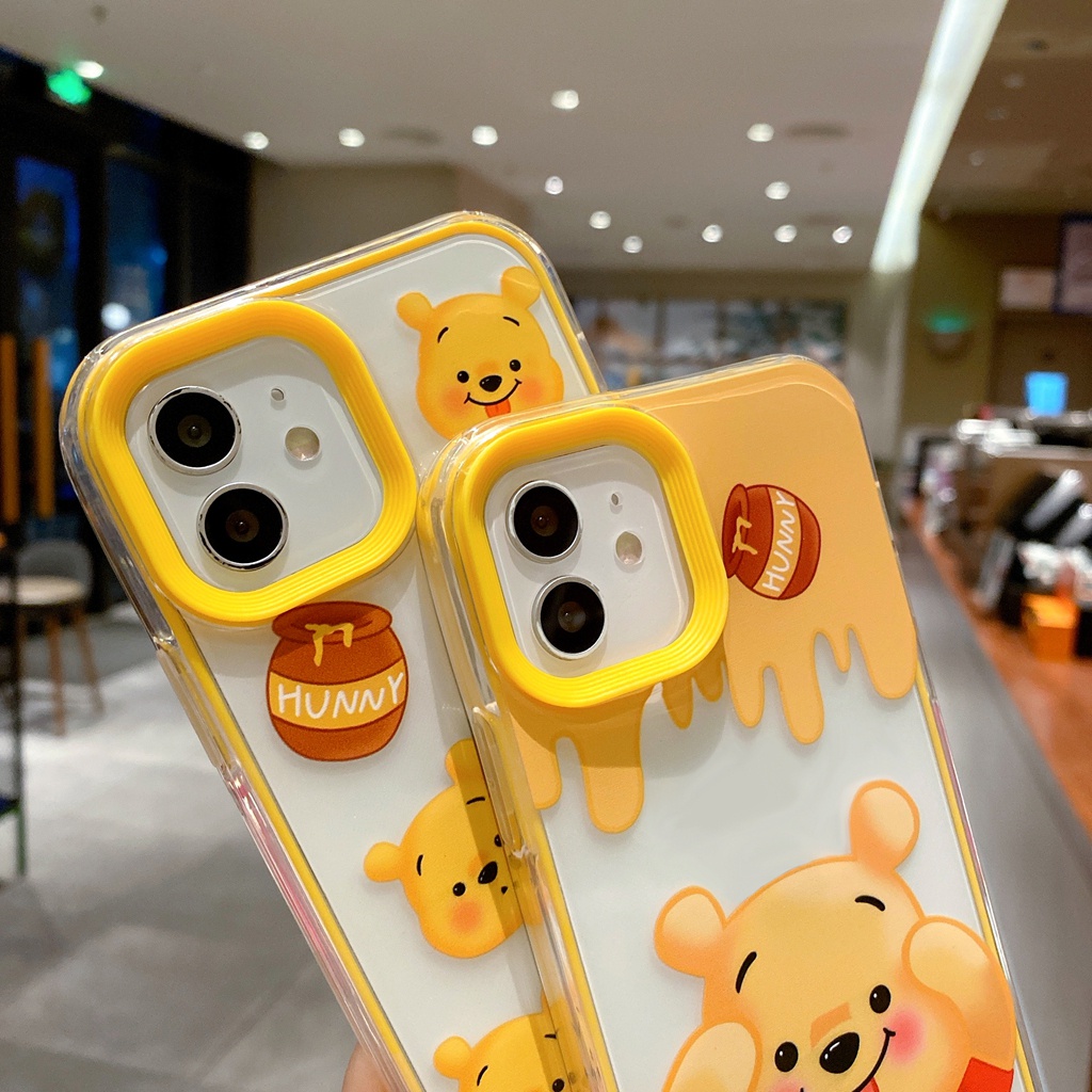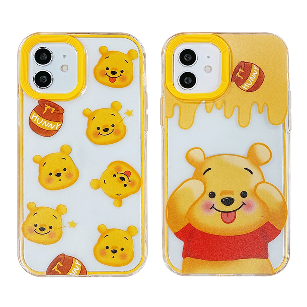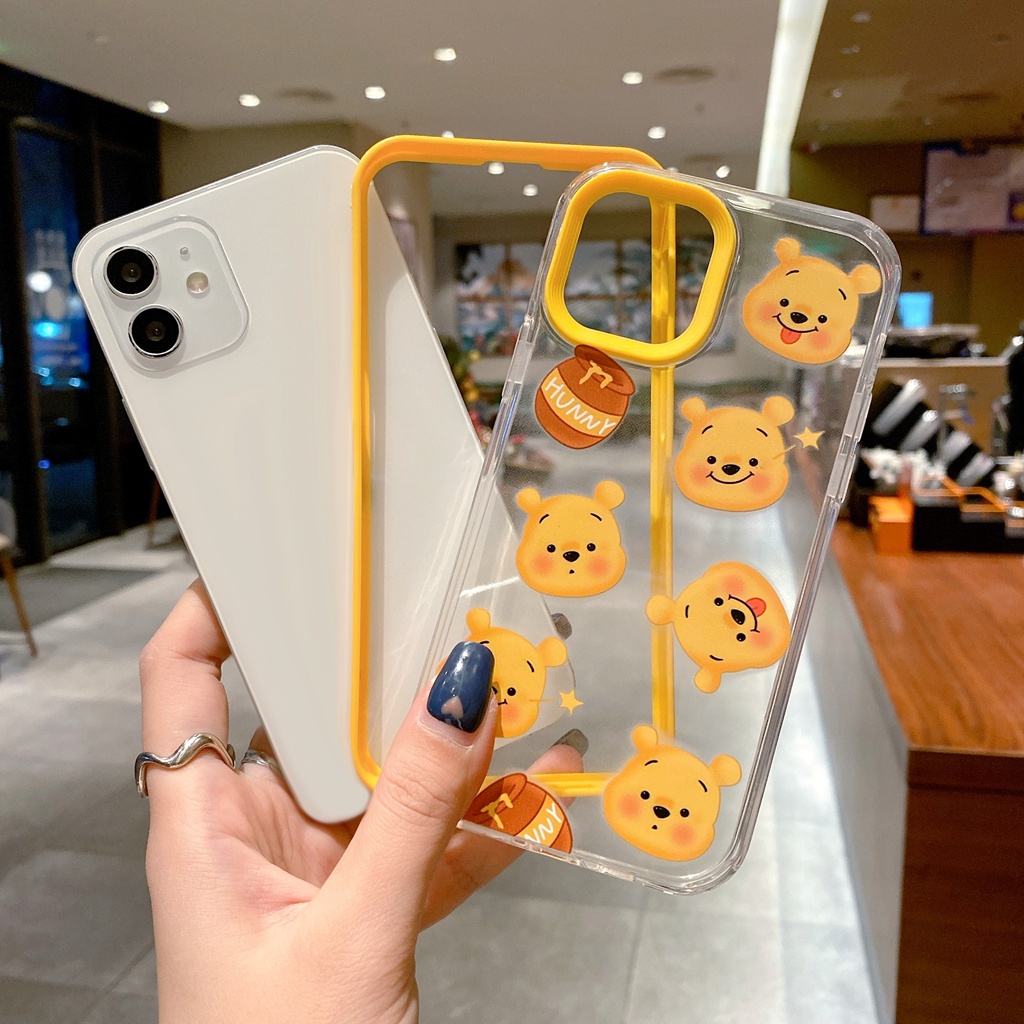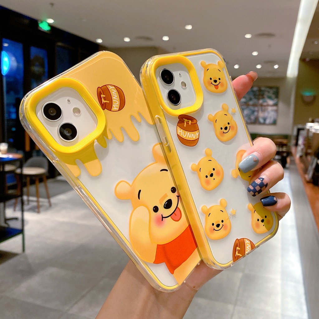 โปร่งใสน่ารักหมีสีเหลืองสําหรับIphone case 17 air 15 16 14 6 6s 7 8 plus XR 11 12 13 pro max 2 in 1 super drop resistance Thicken