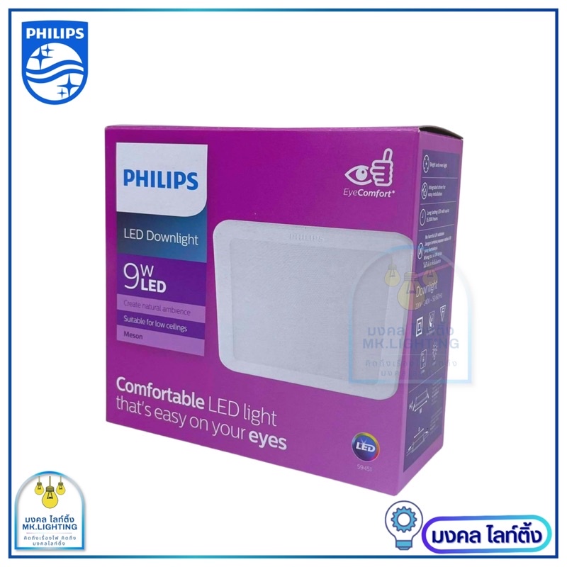 Philips โคมไฟฝังฝ้า DOWN LIGHT 9W ขนาด 4 นิ้ว โคมไฟดาวน์ไลท์ ทรงเหลี่ยม Panel LED 9วัตต์ รุ่น MESON 105 SQ 59451