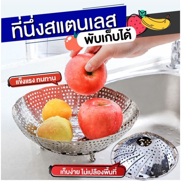 ที่นึ่งสแตนเลส ไว้สำหรับวางอาหารเพื่อทำการนึ่งสามารถหุบกางได้ตามขนาดความต้องการ สะดวกสบายในกา