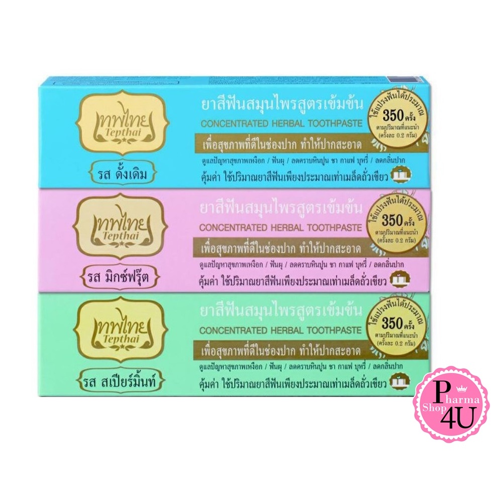 ยาสีฟันเทพไทย TEPTHAI ยาสีฟันสมุนไพร ( รสดั้งเดิม , รสมิกซ์ฟรุ๊ต , รสสเปียร์มิ้นท์ ) ขนาด 70กรัม