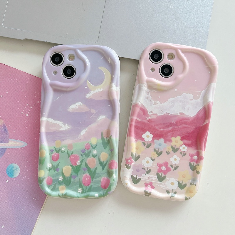 Casing OPPO Reno 11 10 Pro+ 8T 8 5G 7Z 8Z 7 4G 6 6Z 5Z 5F 5Lite 5 6Lite 4 Pro Plus A73 A94 A93 A78 A16 A16S A74 A95 A55 A54 A15 A15S A52 A72 A92 A53 A33 2020 A31 ins Cream Edge Cute Pink Purple Oil painting Moon cloud Starry sky Sea of Flowers Phone Case