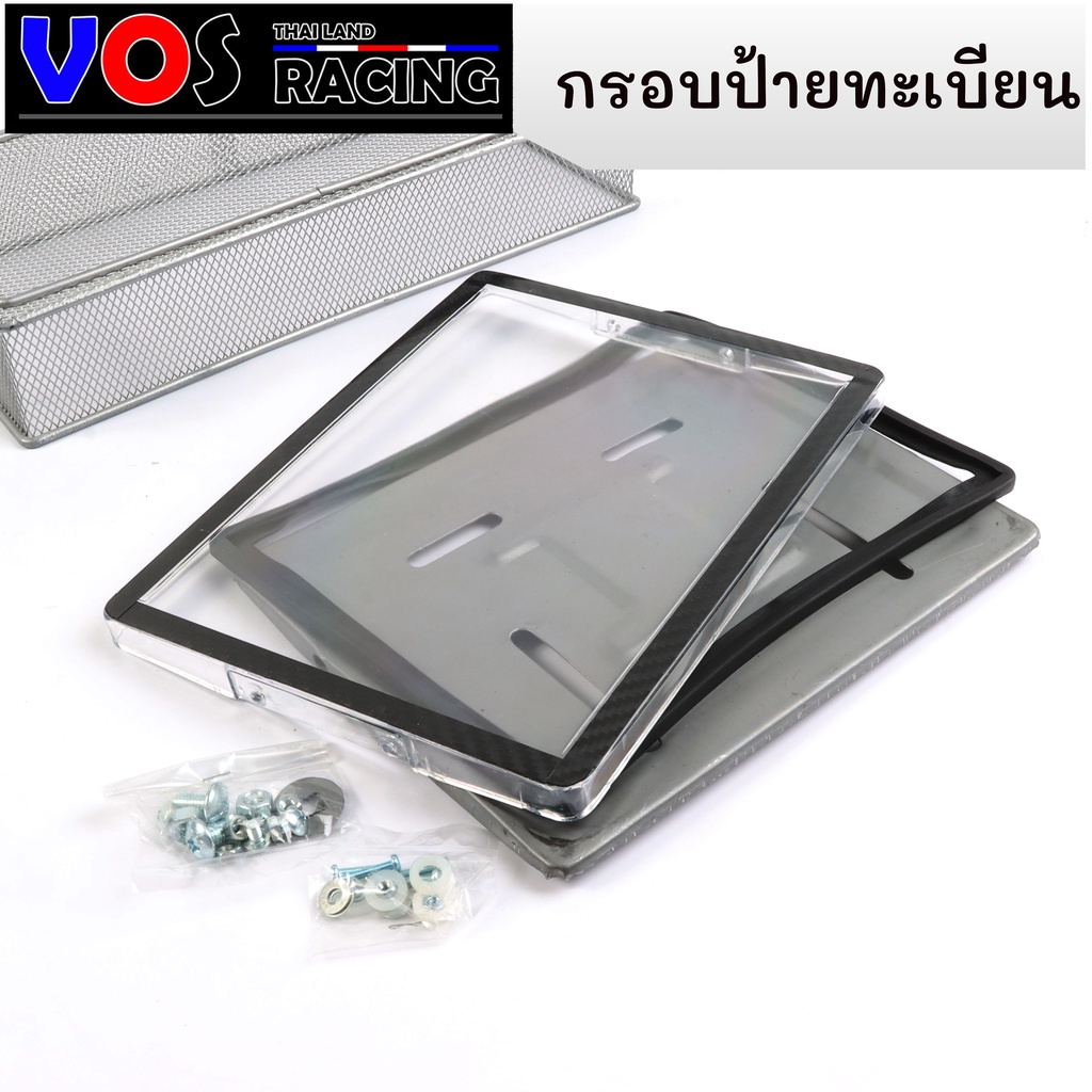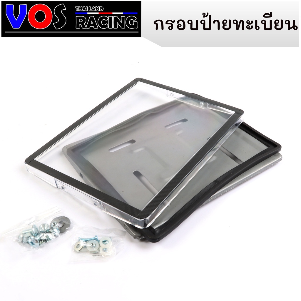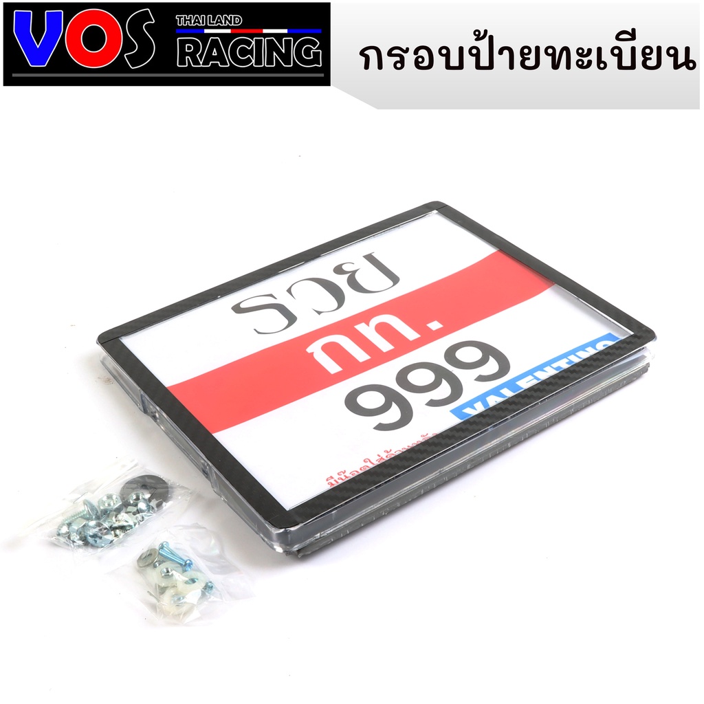 กรอบป้ายรถมอไซค์ กันน้ำ100% ใส่ได้ทุกรุ่น อุปกรณ์ครบชุด กรอบป้ายทะเบียน + น๊อต + แผ่นหลัง สีดำเคฟล่า