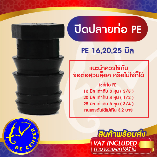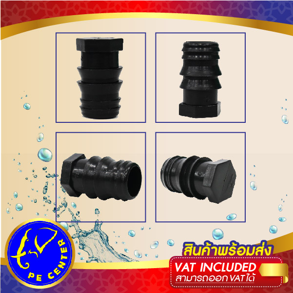ปิดปลาย ท่อ PE ขนาด 16,20,25 มิล ข้อต่อพีอี ข้อต่อท่อพีอี อุดปลายท่อพีอี
