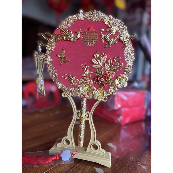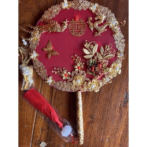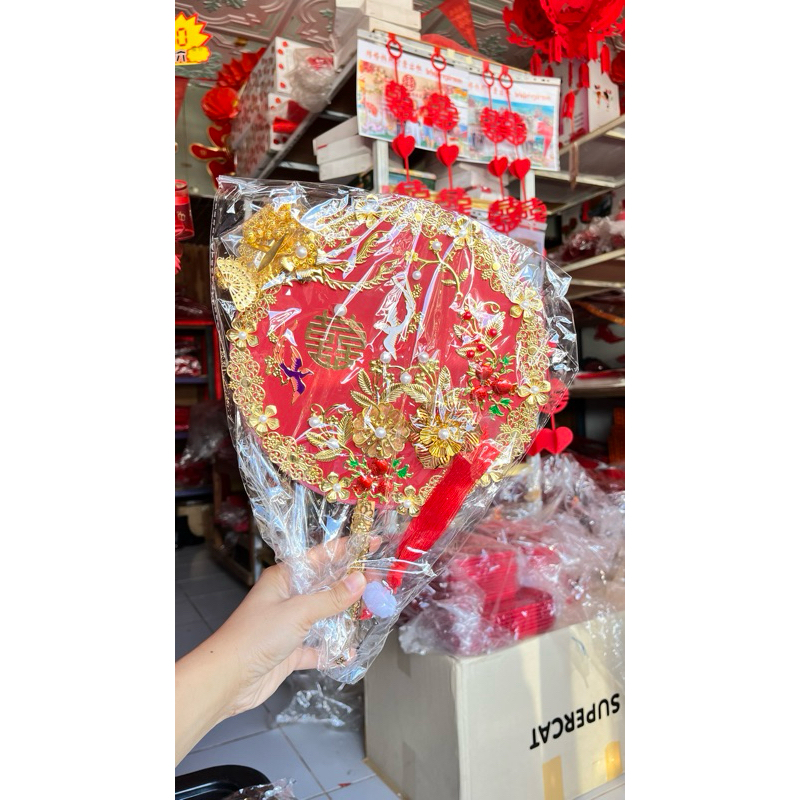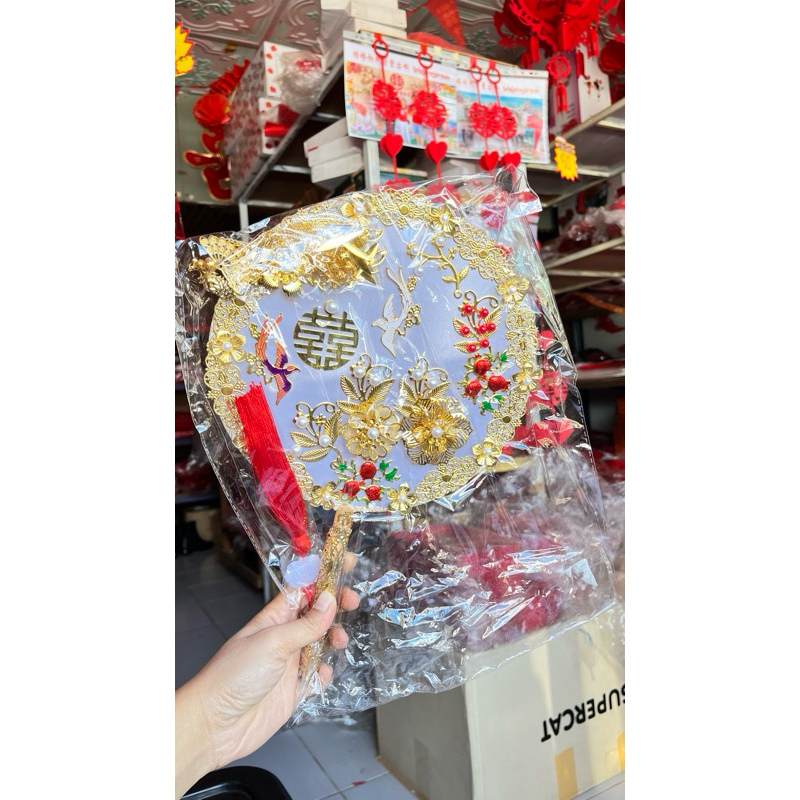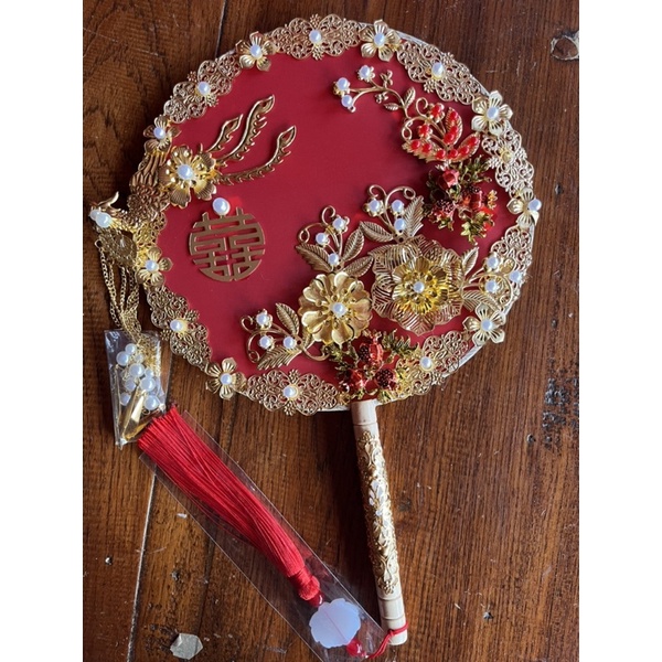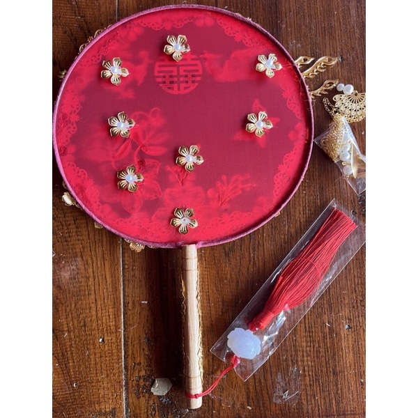 พัดจีนพัดเจ้าสาวพัดแต่งงานพัดสีแดงงานแต่งพัดลายซังฮี้