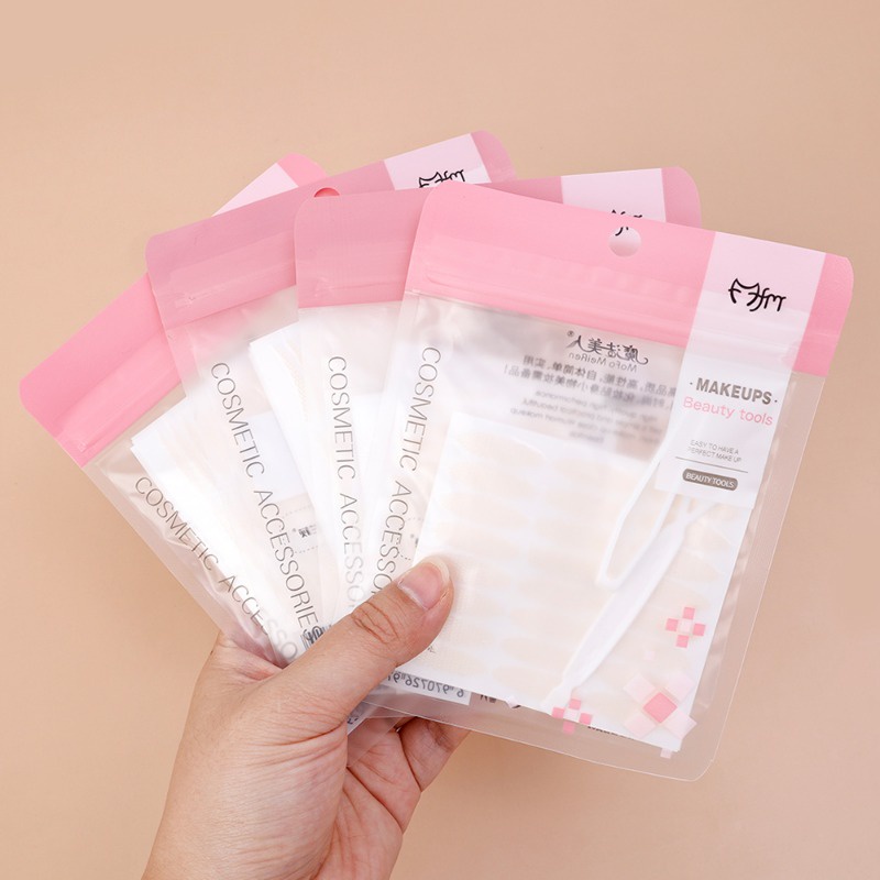 สติกเกอร์ตาสองชั้น แบบตาข่ายลูกไม้ มีกาวในตัว กันน้ํา สีโปร่งใส สําหรับแต่งหน้า