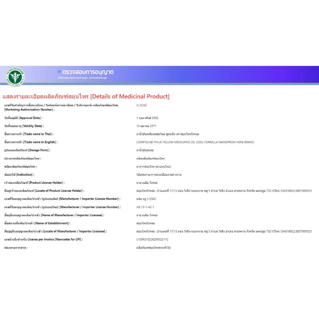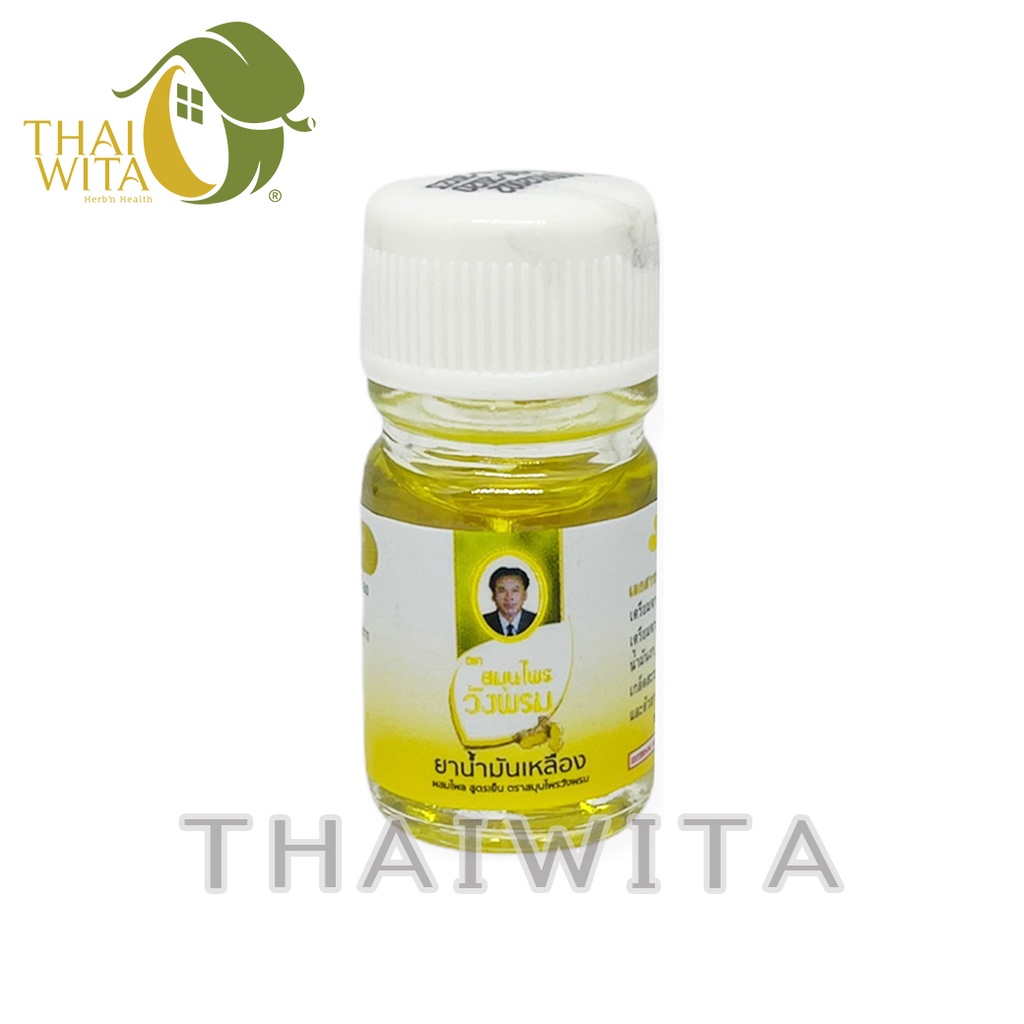 น้ำมันเหลืองผสมไพล สูตรเย็น น้ำมันเหลืองวังพรม สมุนไพรวังพรม 5 ซีซี (1 ขวด)