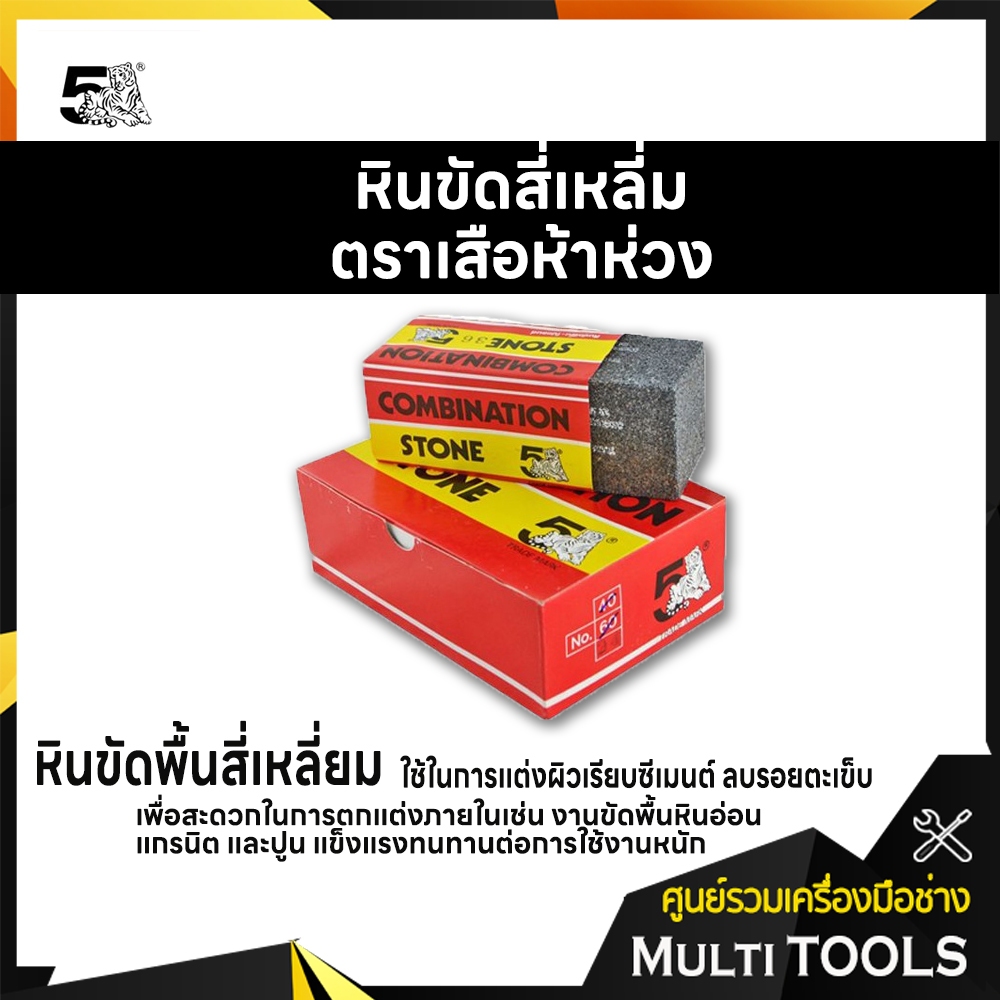 หินขัดพื้น-โปแลนด์ (C) ตราห้าเสือ เนื้อหินแข็ง ใช้สำหรับปรับหินลับมีดที่ไม่เรียบ หรือโค้งเว้า จากการใช้ไปนานๆ สามารถใช้ขัดหินอ่อน หรือพื้นหินขัดทั่วไปก็ได้เช่นกันครับ ขนาดหิน 10.3x5.3x5.3 (เซนติเมตร)