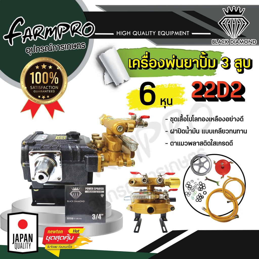 ปั้มพ่นยา 3 สูบ เครื่องพ่นยา 3 สูบ Black Diamond (ขนาด 6 หุน,1 นิ้ว)