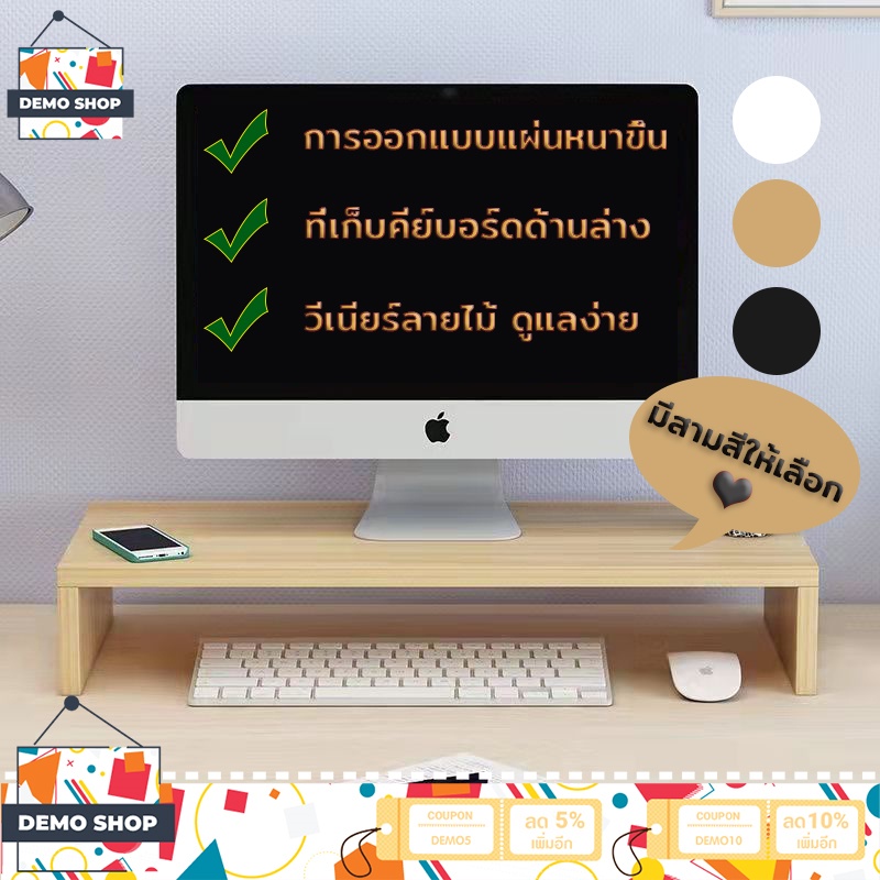 ชั้นวางจอคอม รุ่นไม้หนา ชั้นวางของโต๊ะญี่ปุ่น เรียนออนไลน์ ตกแต่งห้อง