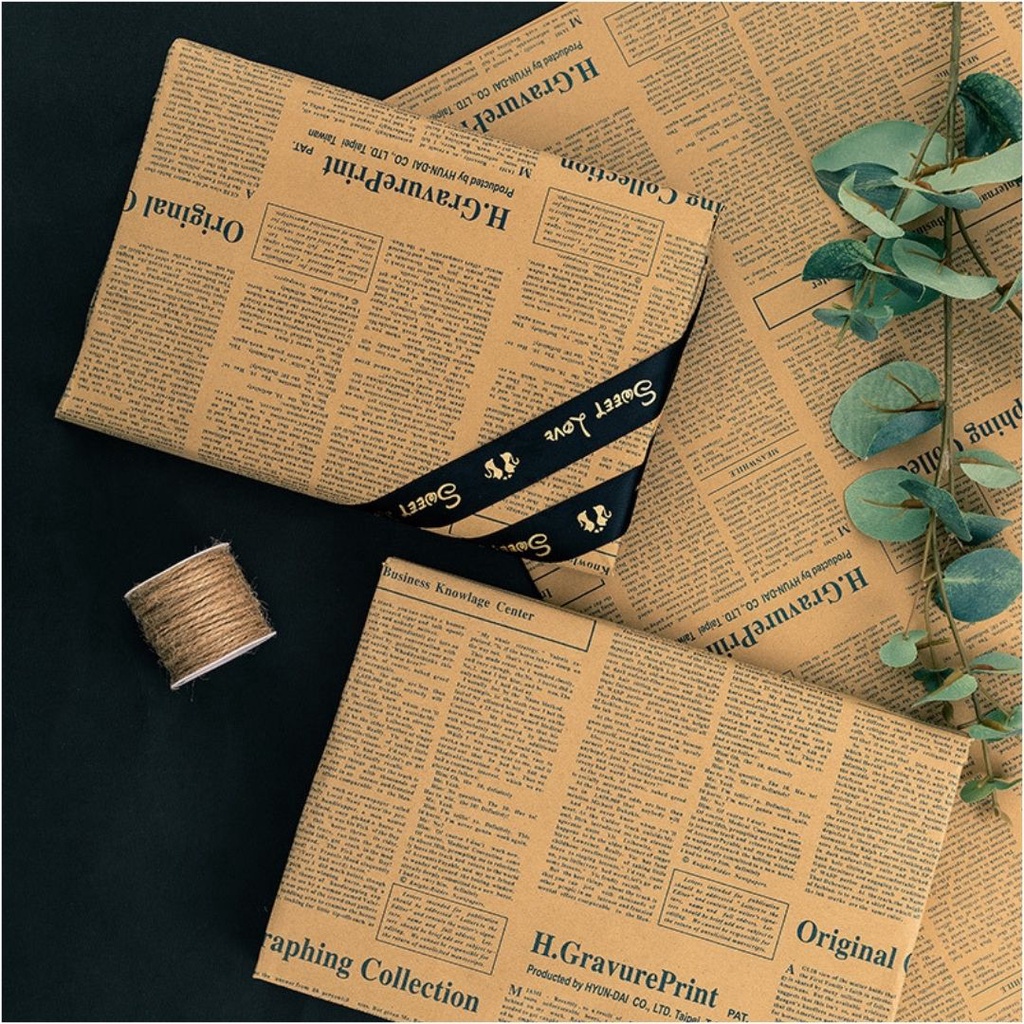 (แพ็คบรรจุ 50 แผ่น) กระดาษคราฟท์ ลายหนังสือพิมพ์ ตัวหนังสือสีดำ คุณภาพดี กระดาษ ห่อของขวัญ ช่อดอกไม้ กระดาษห่อช่อดอกไม้