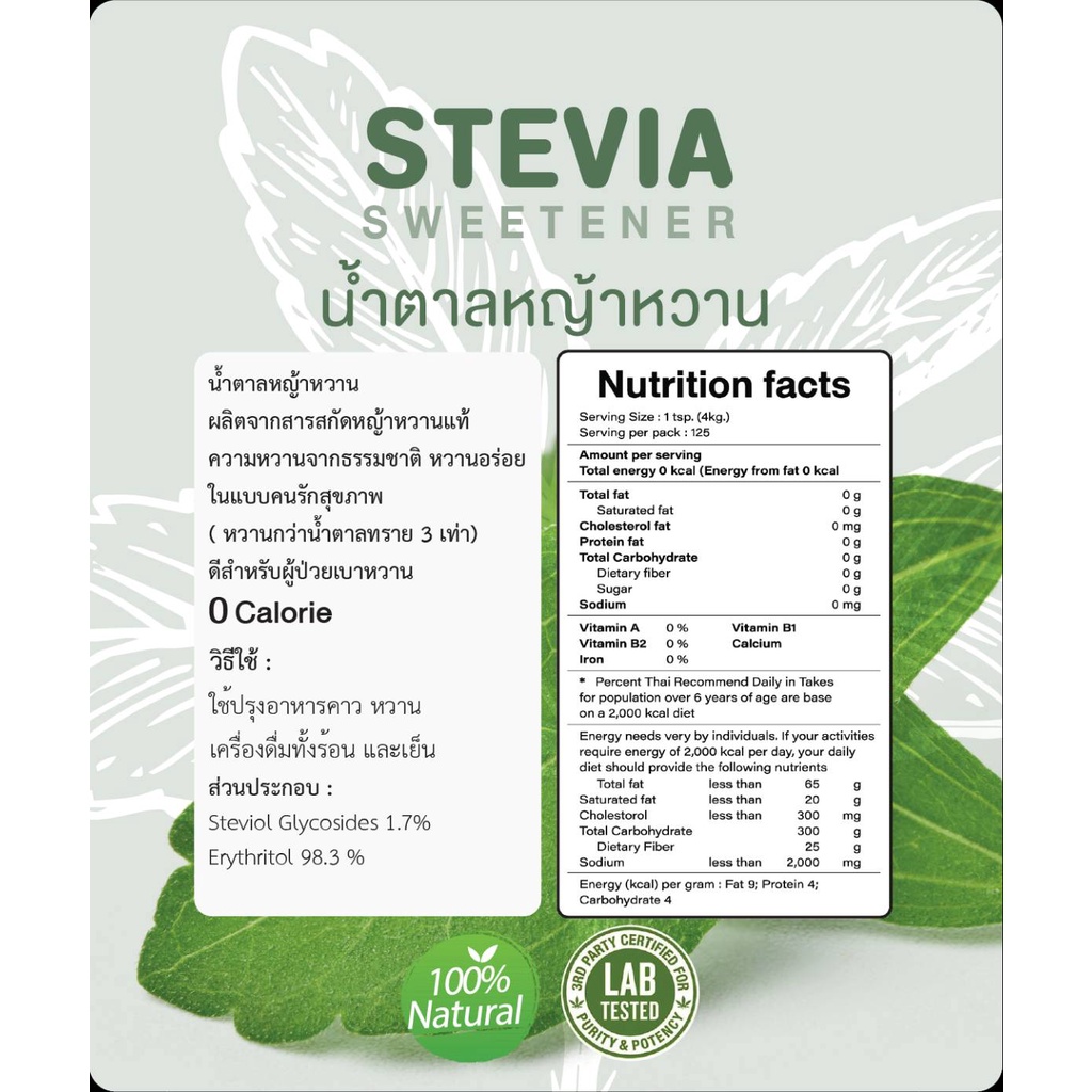 น้ำตาลหญ้าหวาน เป็นน้ำตาลผลิตจากธรรมชาติ ปราศจากแคลอรี่ ไม่กระตุ้นระดับน้ำตาลในเลือด ได้รับความนิยมจากกลุ่มผู้บริโภคที่ต้องการควบคุมระดับน้