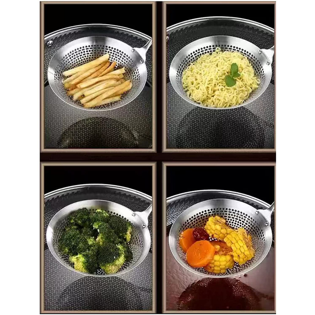 HOMEBERG กระชอน กระชอนสแตนเลส กระชอนตักอาหาร กระชอนสแตนเลสด้ามไม้ ตะแกรงตาข่าย กระชอนตักทอดด้ามไม้ กระชอนกรองกากผลไม้ สแตนเลส