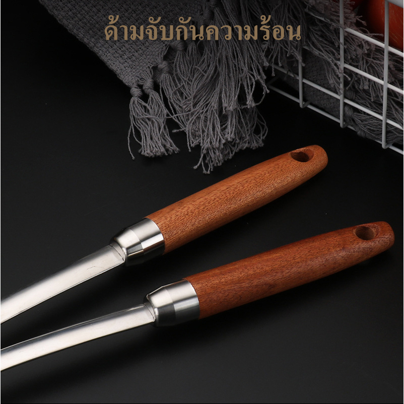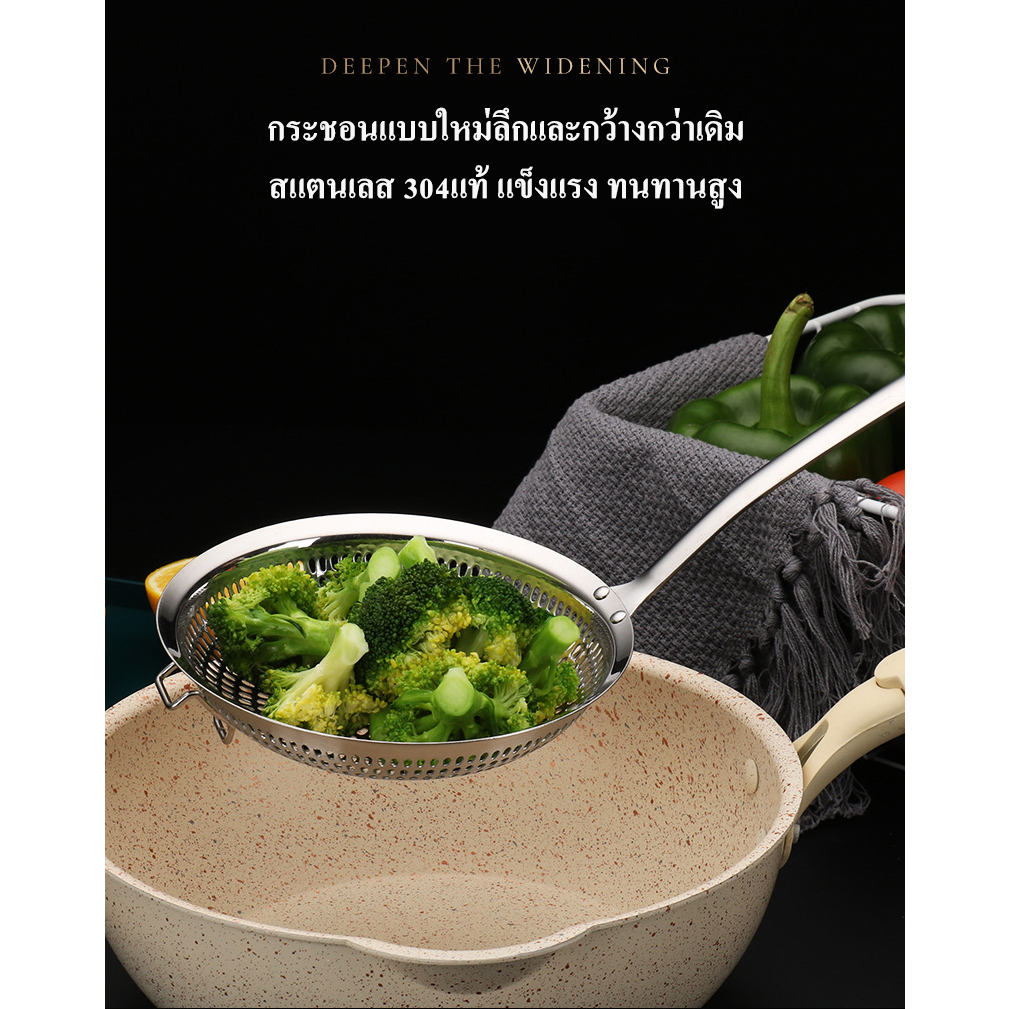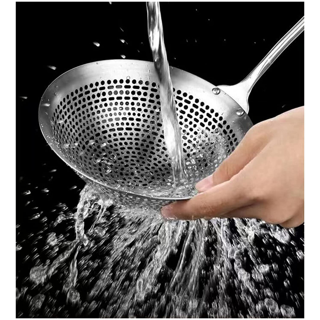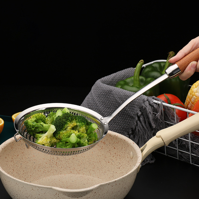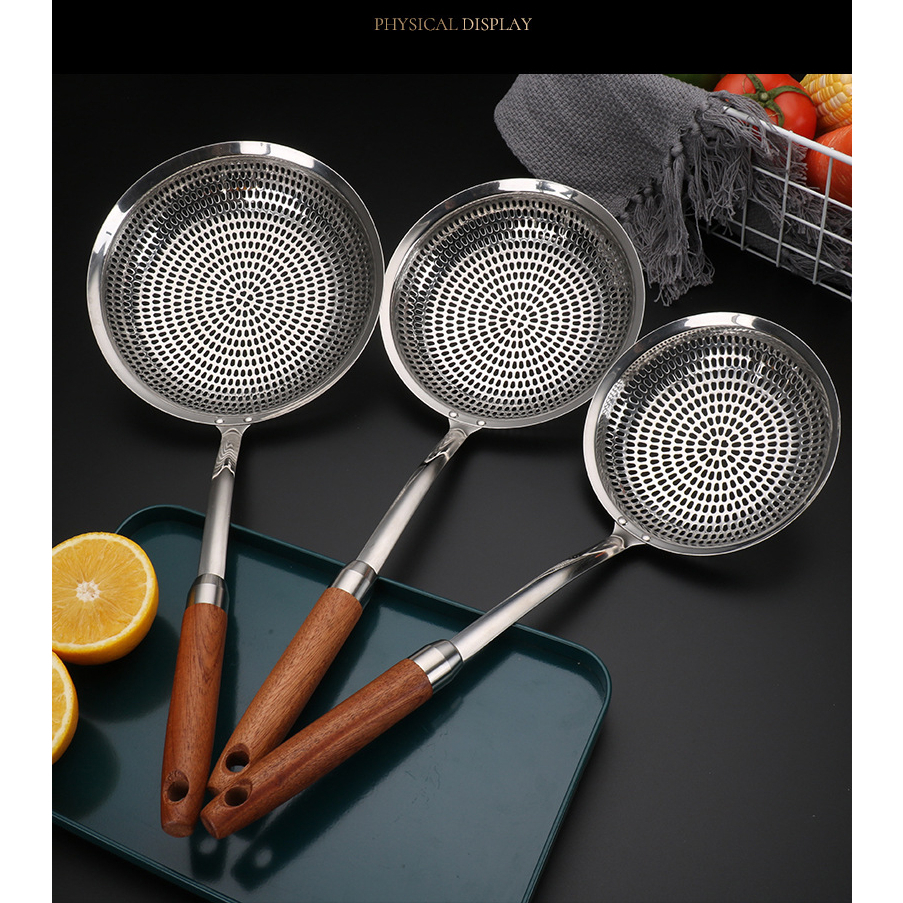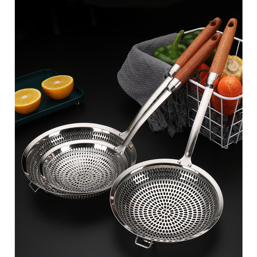 HOMEBERG กระชอน 304 กระชอนสแตนเลส กระชอนตักอาหาร กระชอนสแตนเลสด้ามไม้ ตะแกรงตาข่าย กระชอนตักทอดด้ามไม้ กระชอนกรองกากผลไม