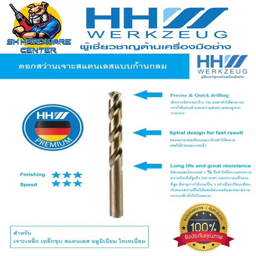 ดอกสว่านโคบอลท์ เจาะเหล็ก สแตนเลส ไททาเนียม ฯลฯ มีขนาดตั้งแต่ 3mm - 13mm , 1/8" - 9/64" ยี่ห้อ HHW (มาตรฐาน เยอรมัน)