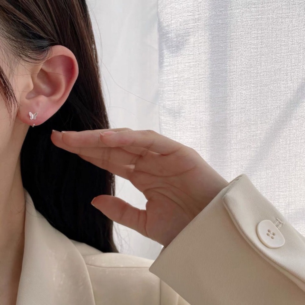 A HELLO GIRL เครื่องประดับ ต่างหูเงินแท้ S925 รูปผีเสื้อ แบบเรียบง่าย สไตล์เกาหลี สําหรับผู้หญิง