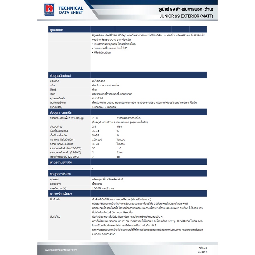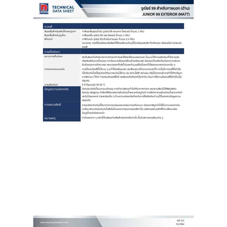 Nipponpaint Junior 99 Exterior Matt สีน้ำ นิปปอน จูเนียร์ 99 ภายนอก ชนิด ด้าน ถัง ใหญ่ [3.5 ลิตร]