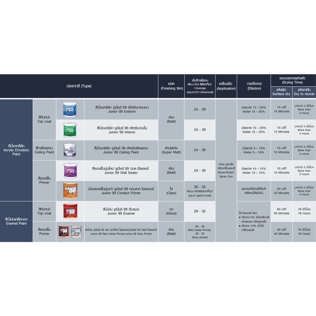 สีน้ำอะคริลิกสูตรพิเศษ คุณภาพเยี่ยม ราคาย่อมเยา ให้ฟิล์มสีเรียบเนียน สวยงาม ทนทาน ใช้งานง่าย