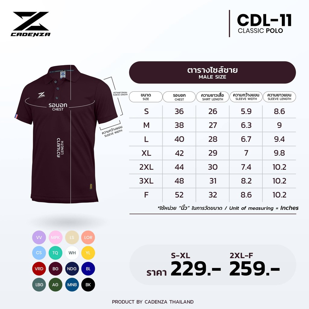 CADENZA POLO เสื้อโปโลชาย เสื้อโปโลแขนสั้นคาเดนซ่า CADENZA POLO รหัส CDL-11 ชุดที่ 4 ของแท้100%