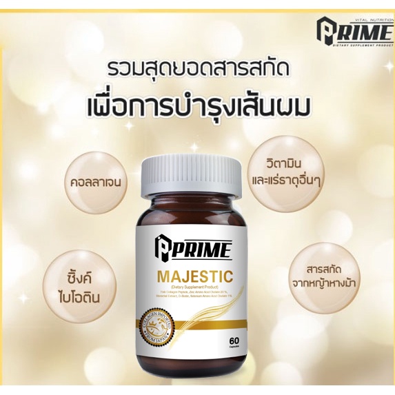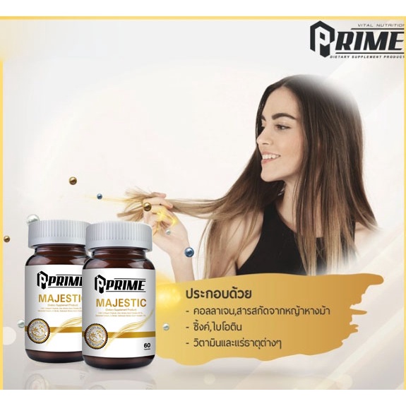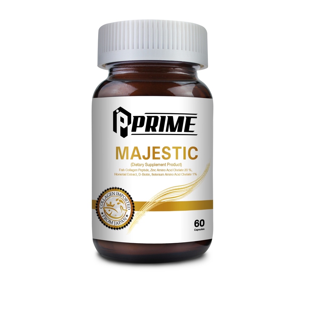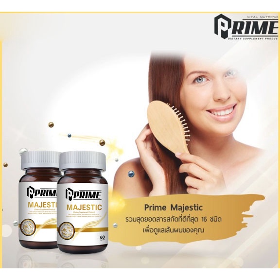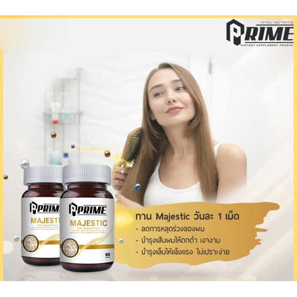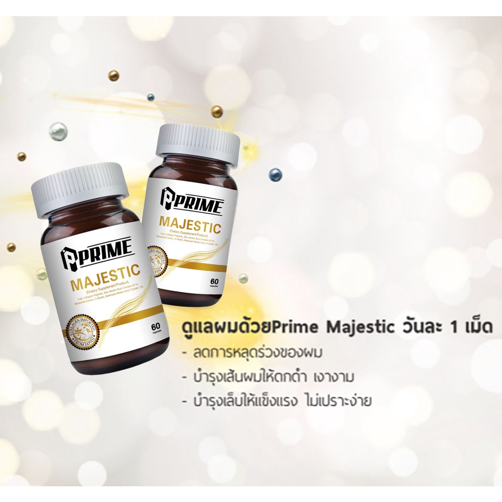 Prime Majestic 60แคปซูล ช่วยในการบำรุงเส้นผม เสริมความแข็งแรงของเซลล์ผม ลดอาการหลุดร่วงของเส้นผม