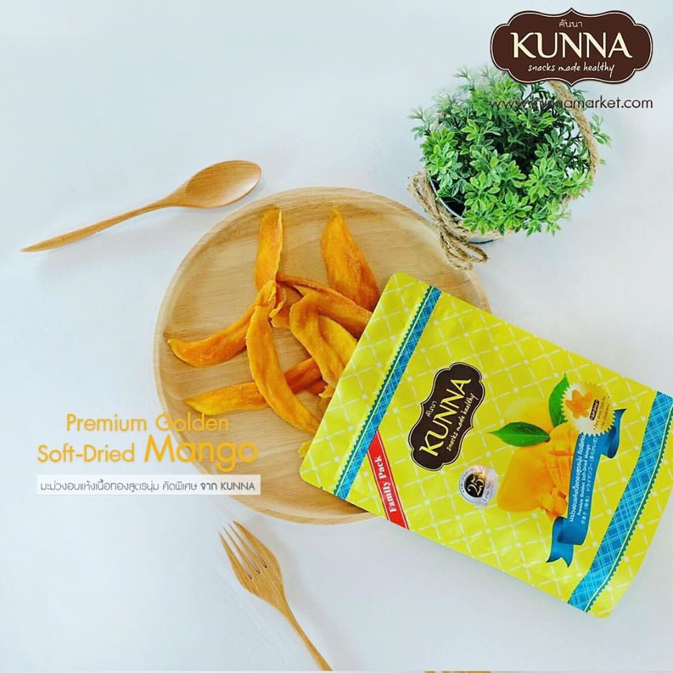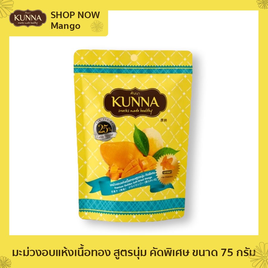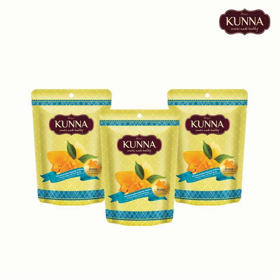 มะม่วงอบแห้งเนื้อทองคัดพิเศษขนาด 75 กรัม เเพค 3 ซอง แบรนด์ KUNNA (คันนา)
