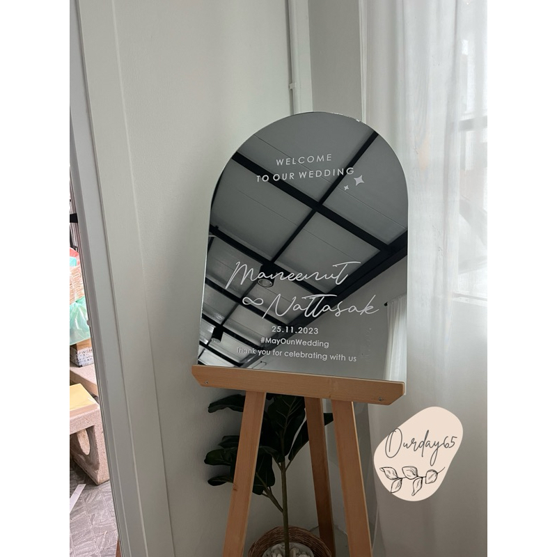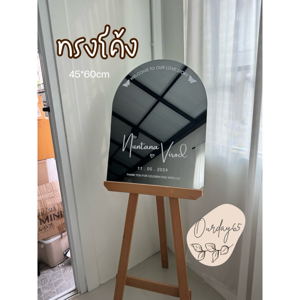 ฮิตสุดๆ✨ ป้ายกระจกโค้ง หน้างานแต่ง เพิ่มสีสันให้กับงานแต่ง ขนาด 45*60 cm