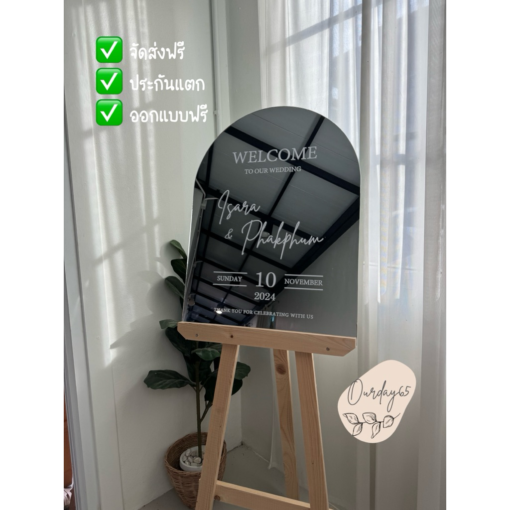 ป้าย welcome กระจกโค้ง กระจกหน้างานแต่ง ไม่รวมขาตั้ง