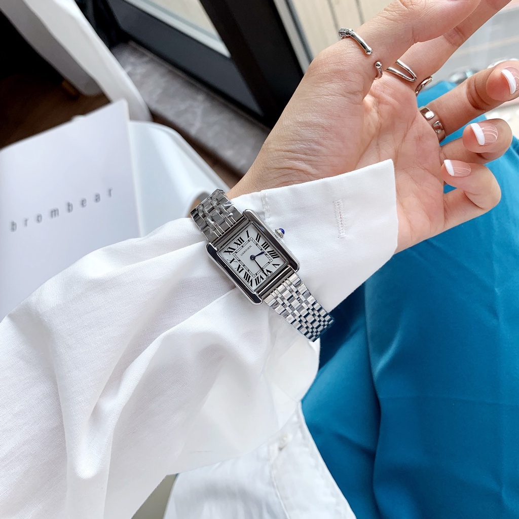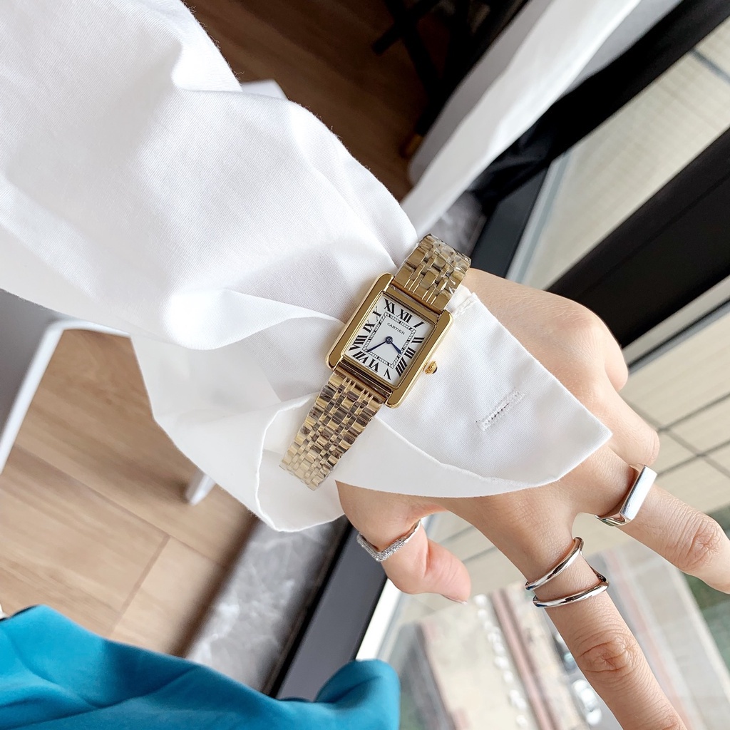 CT Women’s Square Watch Sérias ultra finas de tanques Simplicidade da moda Quartz cinto de aço de borboleta