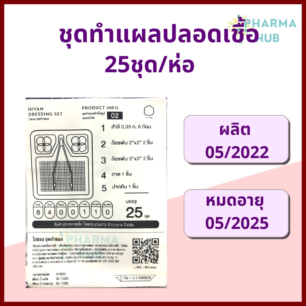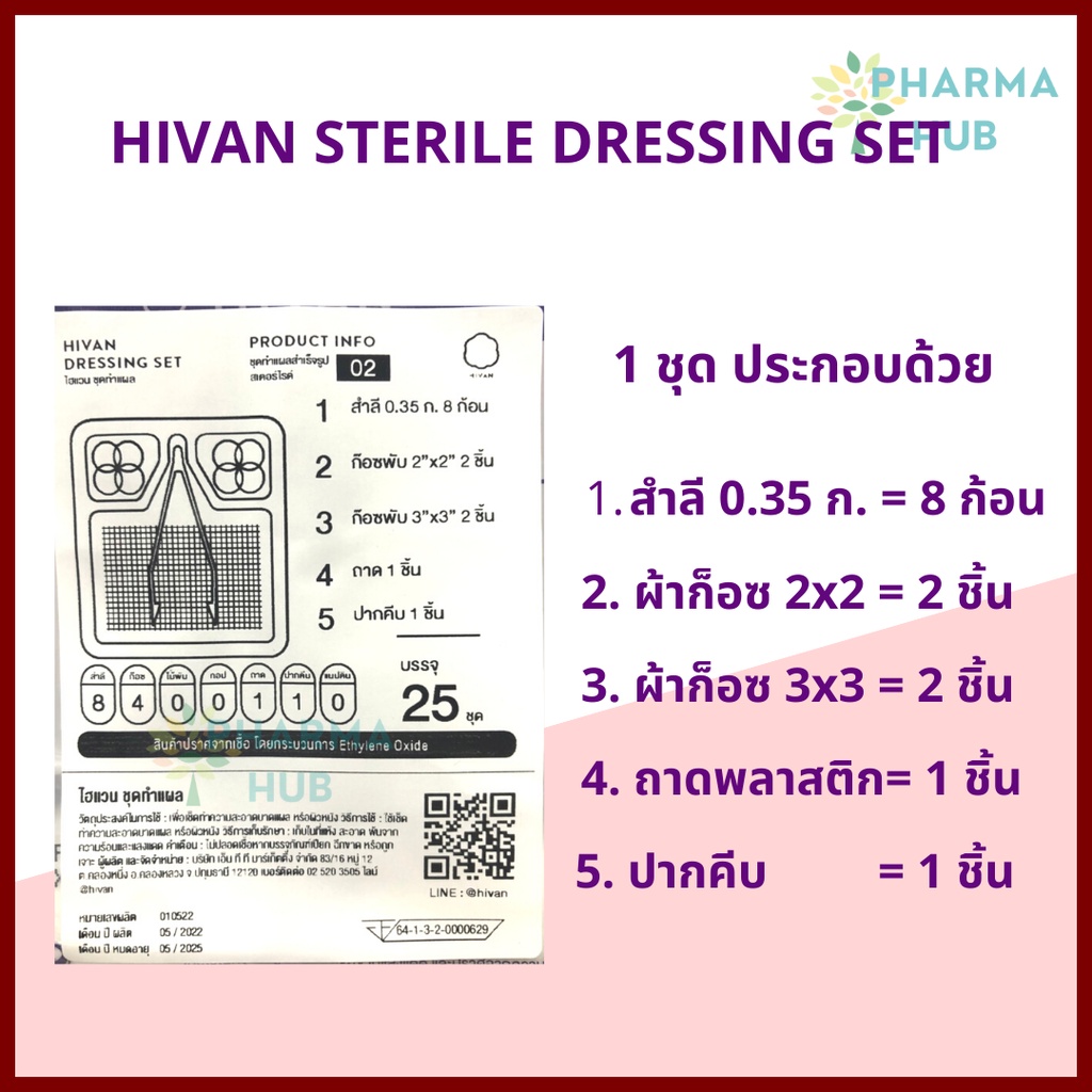 (25ชุด) Hivan ชุดทำแผลปลอดเชื้อ 25 ชุด/ถุง สำลีก้อน ผ้าก็อซ เซตทำแผล สเตอร์ไรด์ สะอาด ออกใบกำกับได้
