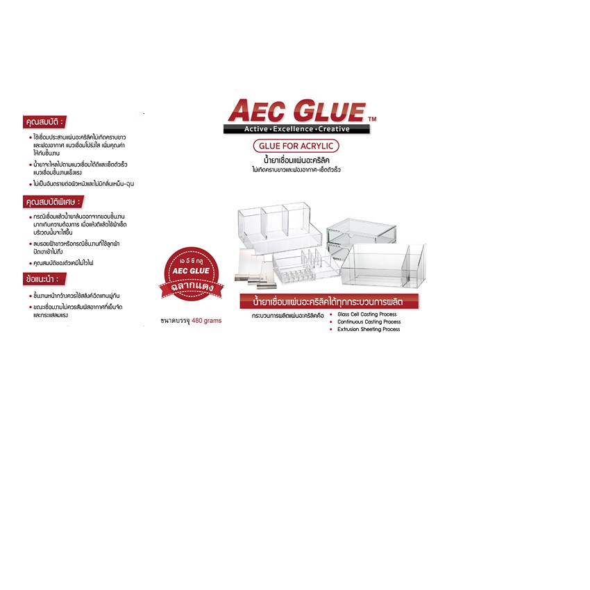 Aec glue น้ำยาประสานอคริลิค น้ำยาเชื่อมแผ่นพลาสติก 480g ชนิดไร้คราบ