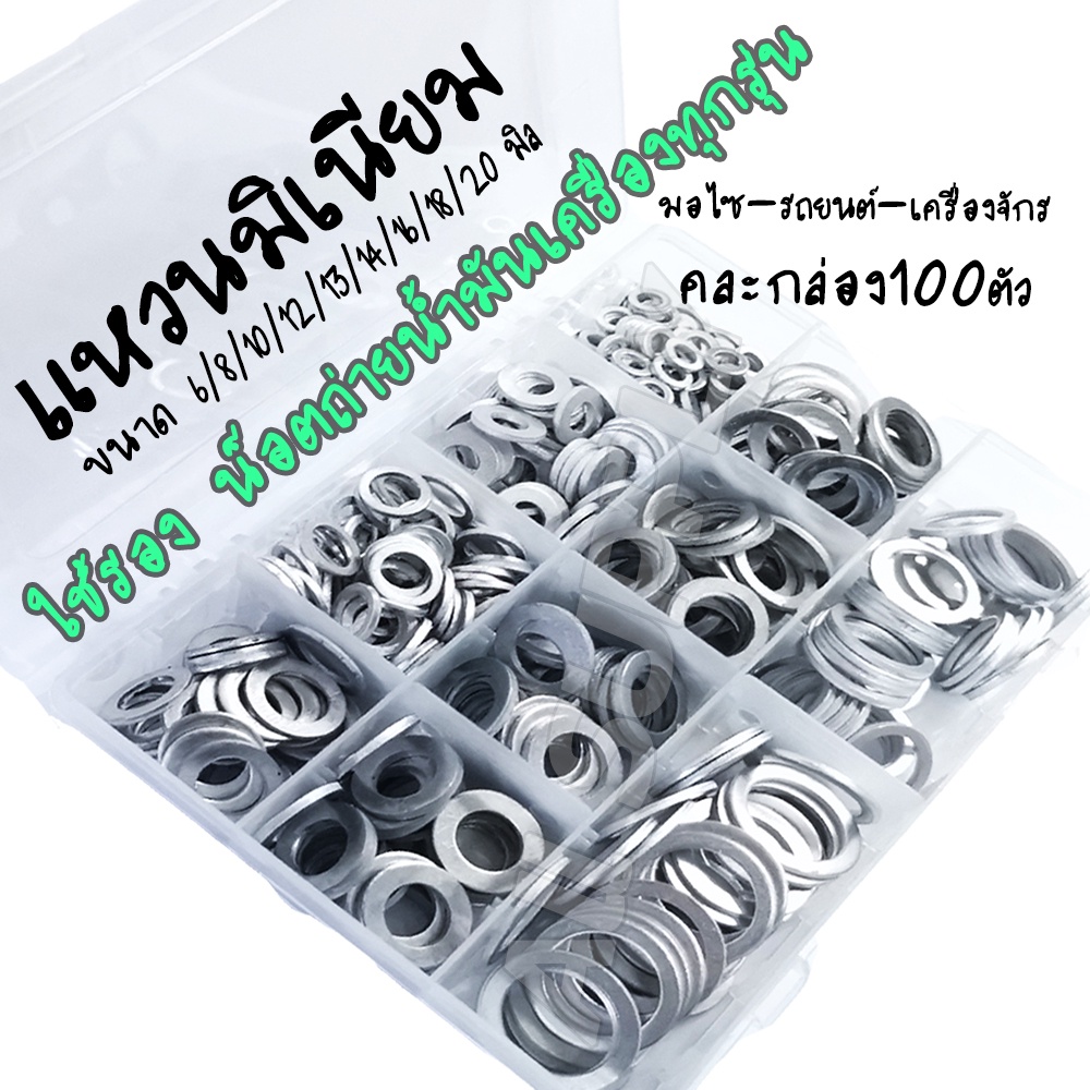 แหวนอลูมิเนียม แหวนมิเนียม #จำนวน 100ชิ้น แหวนถ่ายน้ำมัน #เลือกขนาด 8มิล ถึง18มิล แหวนรอง แหวนน้ำมัน อลูมิเนียม แหวน