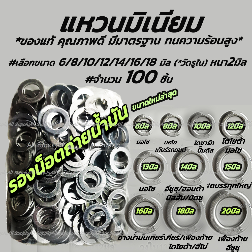 โปรลดพิเศษ แหวนมิเนียม #จำนวน 100ชิ้น แหวนรองถ่ายน้ำมันเครื่อง #เลือกขนาด 8มิล, 10มิล, 12มิล, 13มิล, 14มิล, 15มิล, 16มิล, 18มิล (วัดรูใน)
