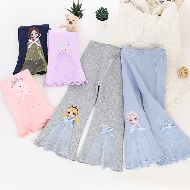 [ML] กางเกงขาบาน 90-140 ซม. แฟชั่นฤดูใบไม้ผลิ และฤดูใบไม้ร่วง สําหรับเด็กผู้หญิง