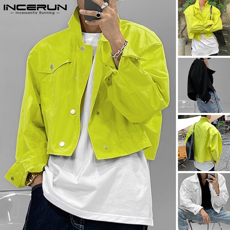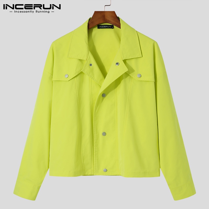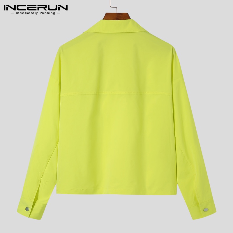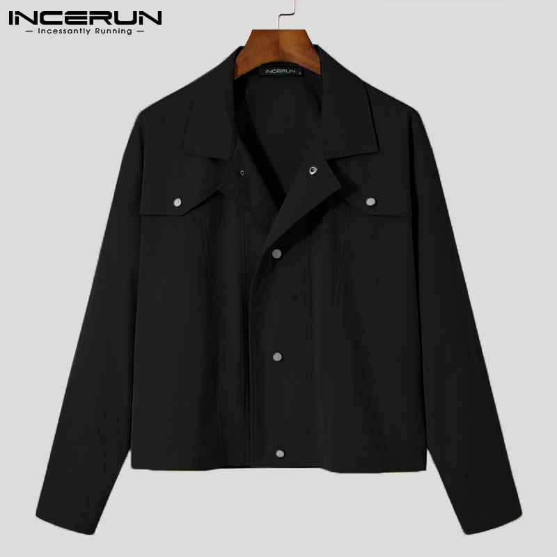 Incerun เสื้อแจ็กเก็ตแขนยาว สีพื้น สไตล์ตะวันตก สําหรับผู้ชาย