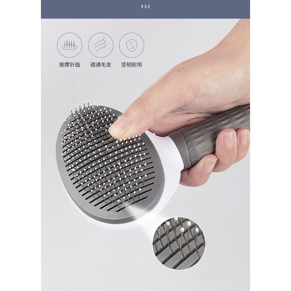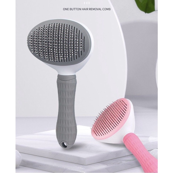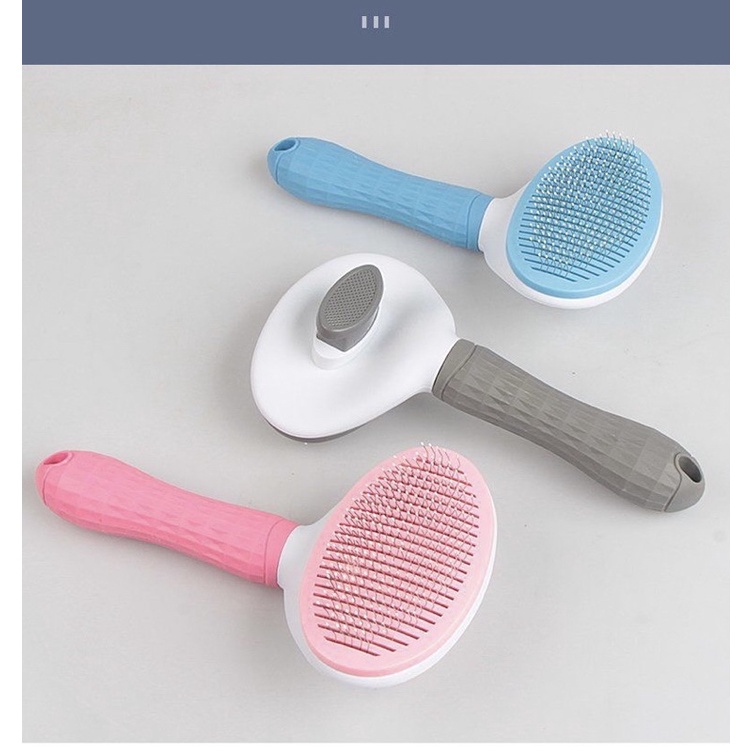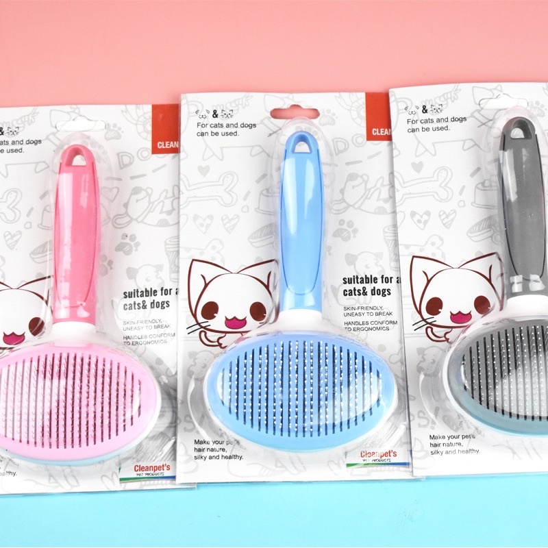 สินค้าพร้อมส่ง หวีแปรงขนน้องแมว น้องหมา ใช้งานง่าย มีปุ่มดันขนออก ขนาด 20*11 ซม. สีเทา ฟ้า ชมพู