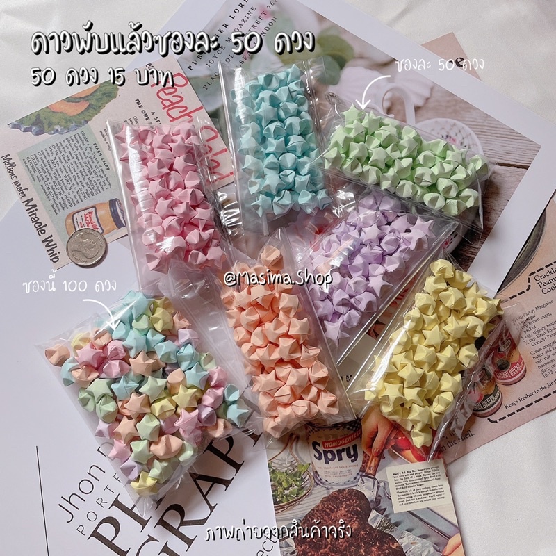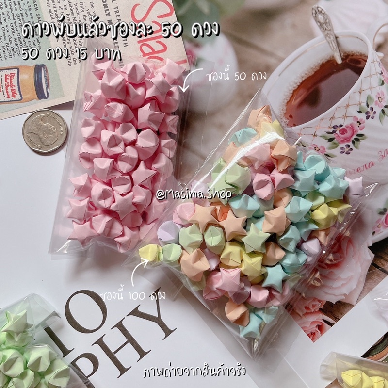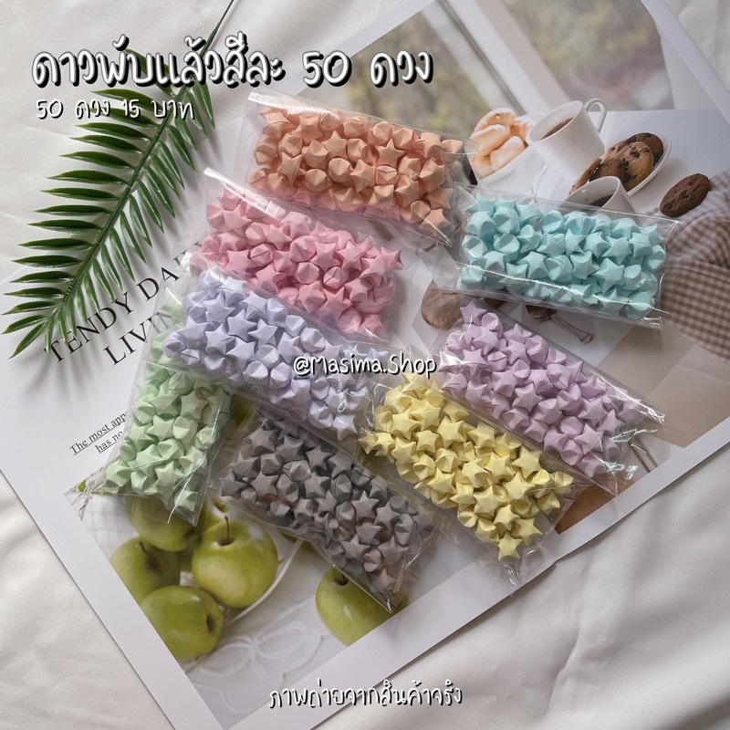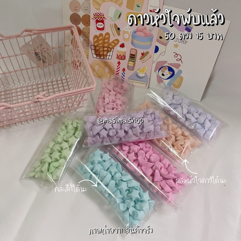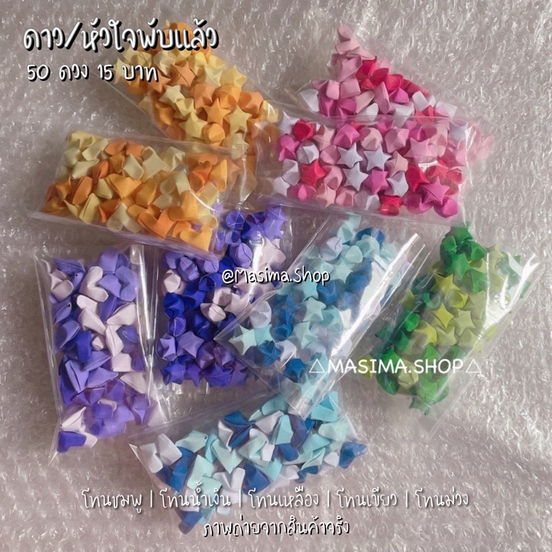 ✨ดาว/หัวใจพับแล้ว 50 ดวง✨ดาว/หัวใจสำเร็จรูป✨มี 24 สีให้เลือก