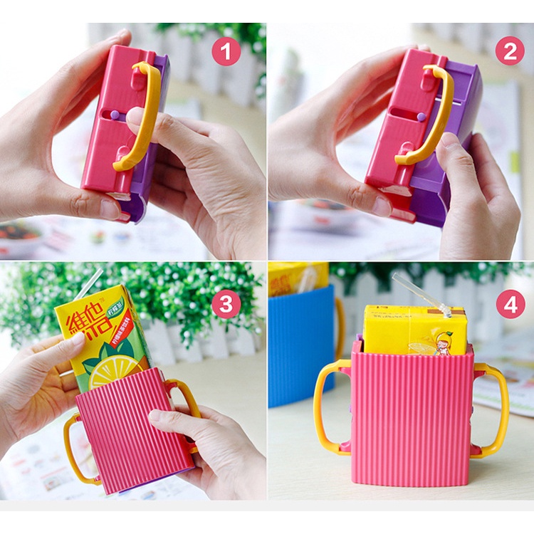 ?COD?กล่องกันบีบ กันบีบกล่องนม น้ำผลไม้ ที่จับกล่องนม ปรับขยายได้ พับได้