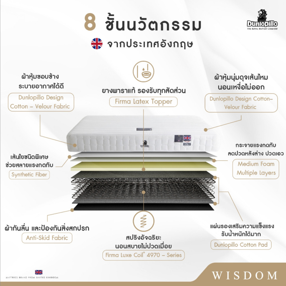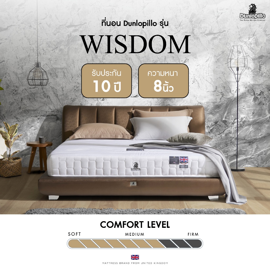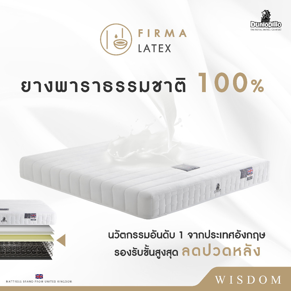 [ฟรี!ชุดผ้าปู] Dunlopillo รุ่น Wisdom ที่นอนเพื่อสุขภาพ ยางพาราแท้100% ลดอาการปวดหลัง ส่งฟรี