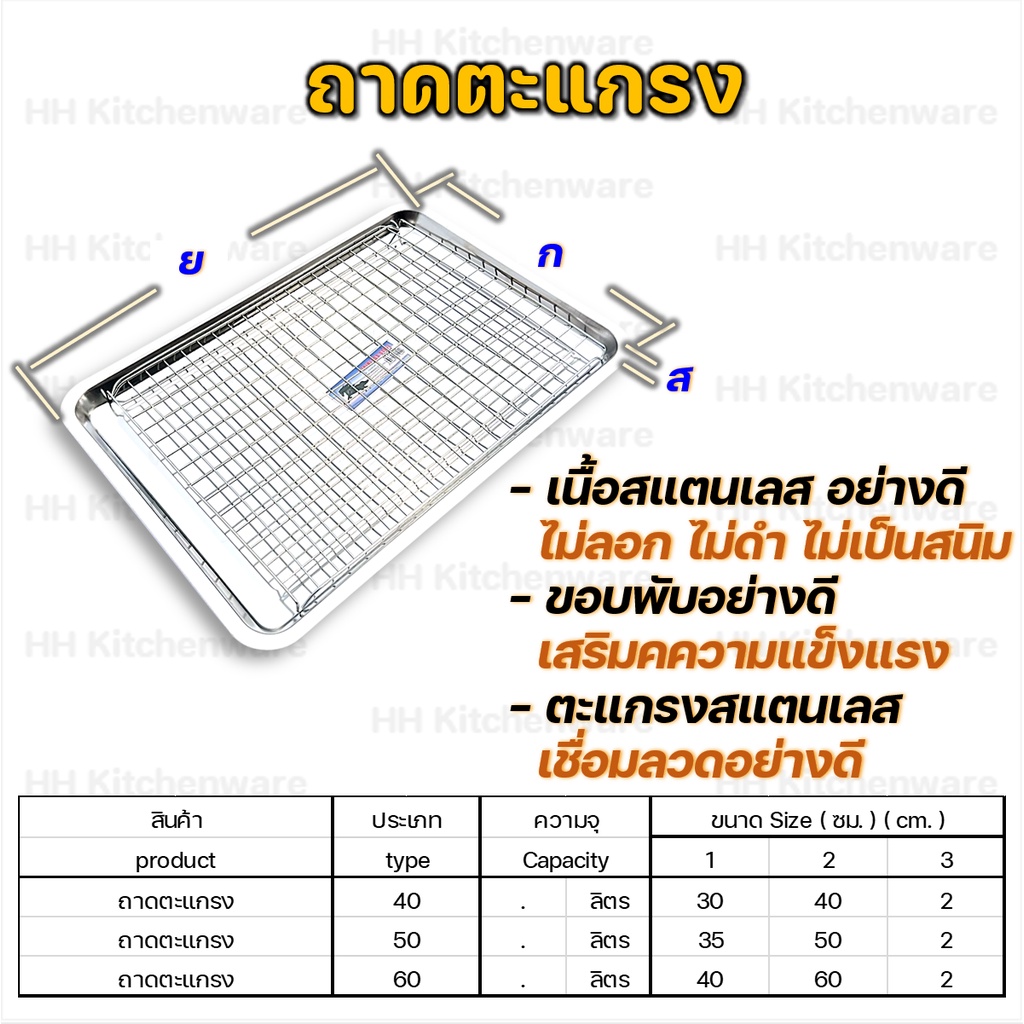 ถาดสแตนเลส + ตะแกรง ขนาด 40 50 60 สแตนเลสสอย่างดี ไม่ลอก ไม่ดำ ไม่เป็นสนิม