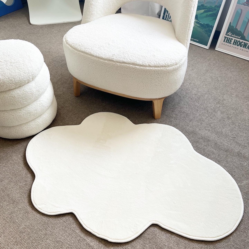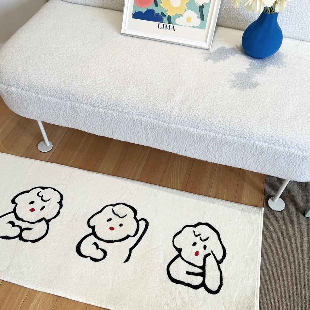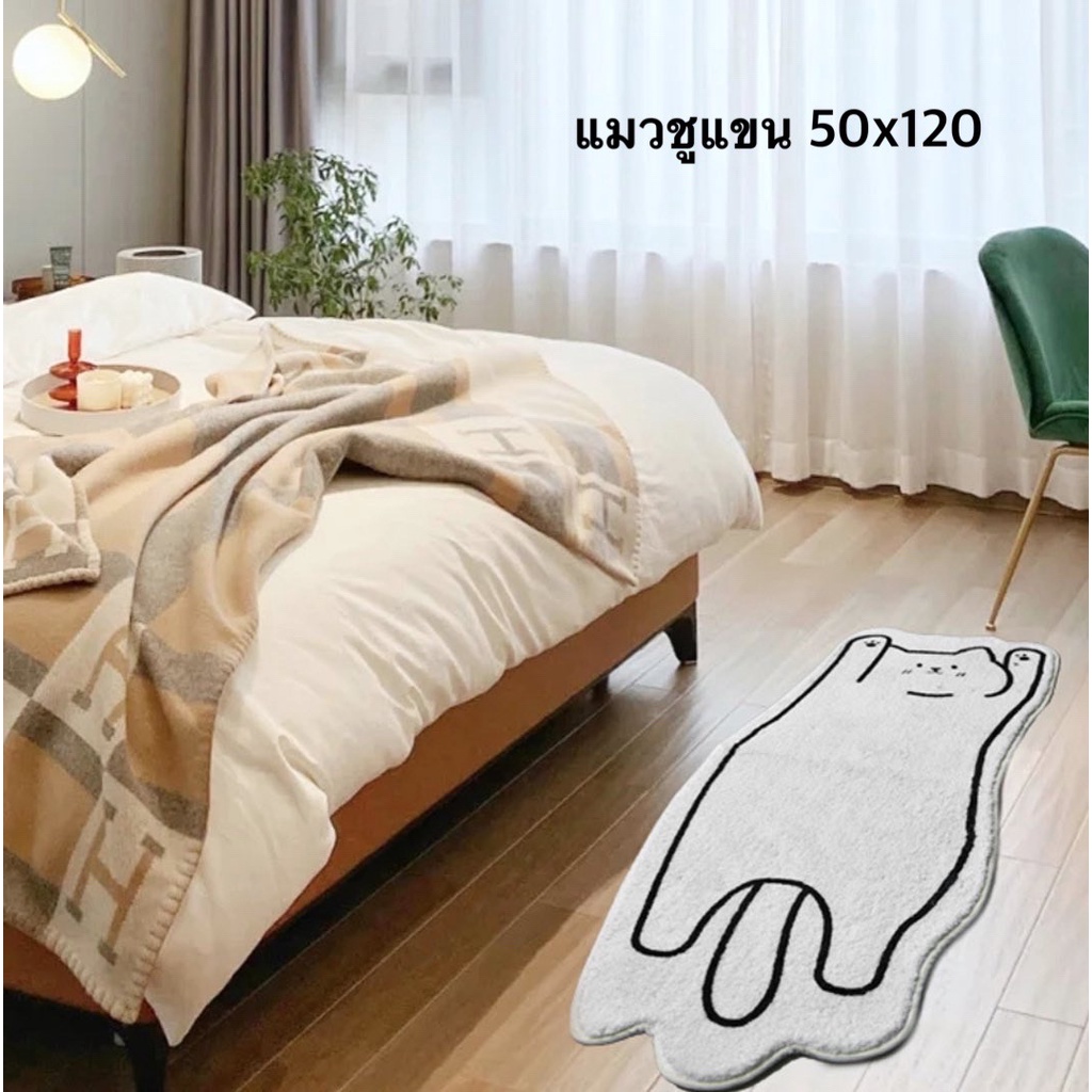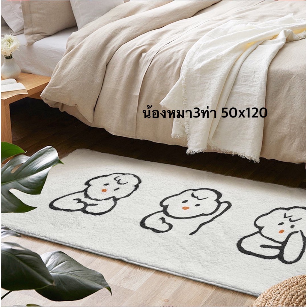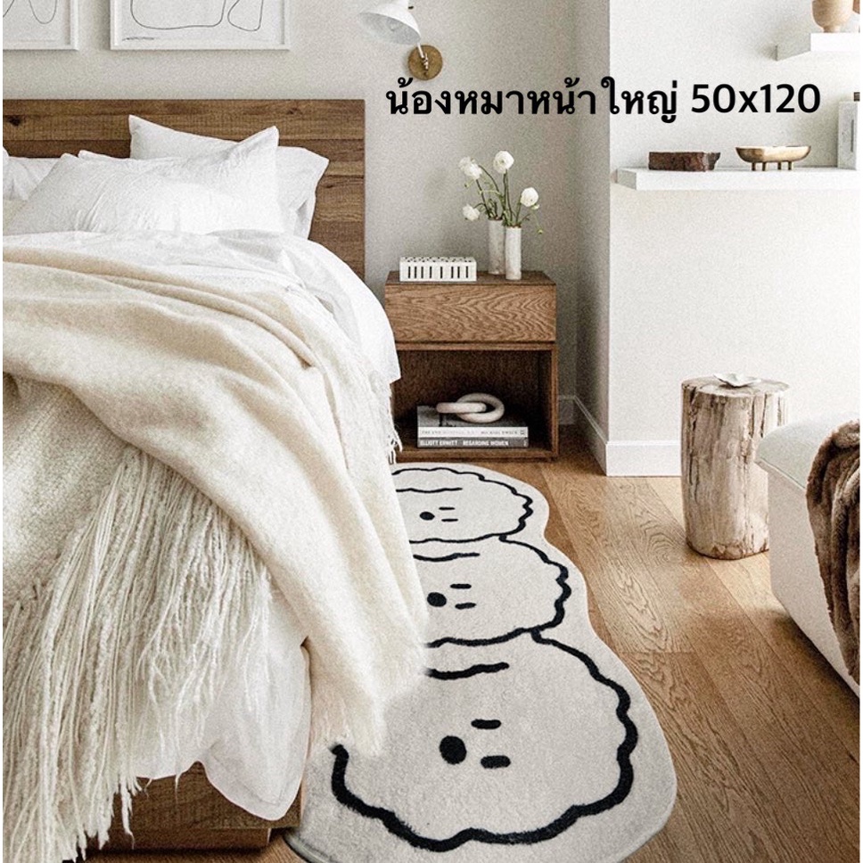 พรมสไตล์มินิมอล พรมสีขาว พรมแมว พรมน้องหมา พรมยาว พรมข้างเตียง พรมแต่งห้อง มีกันลื่น