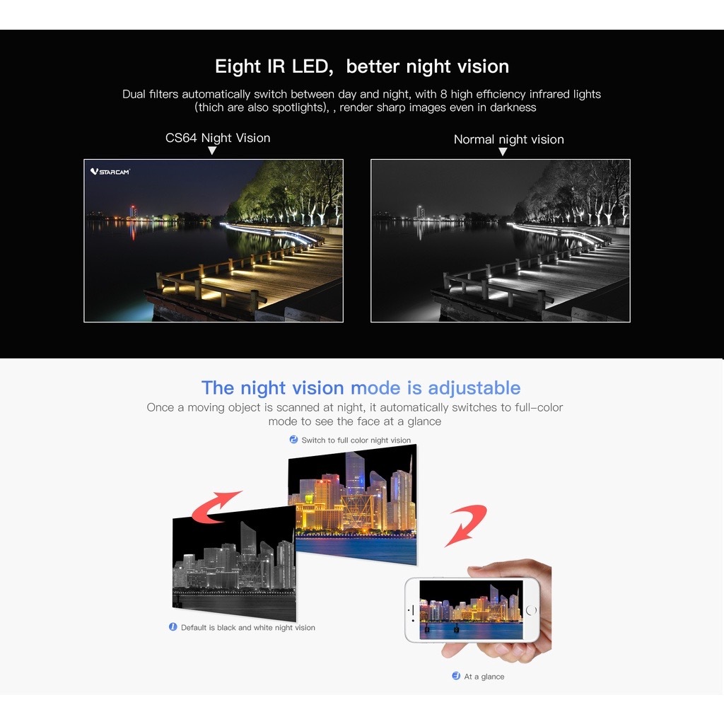 VSTARCAM CS64 WiFi กล้องวงจรปิดไร้สาย ความละเอียด 3MP (1296P) ภาพสี มี Ai + ตรวจจับคนและสัญญาณเตือน Outdoor