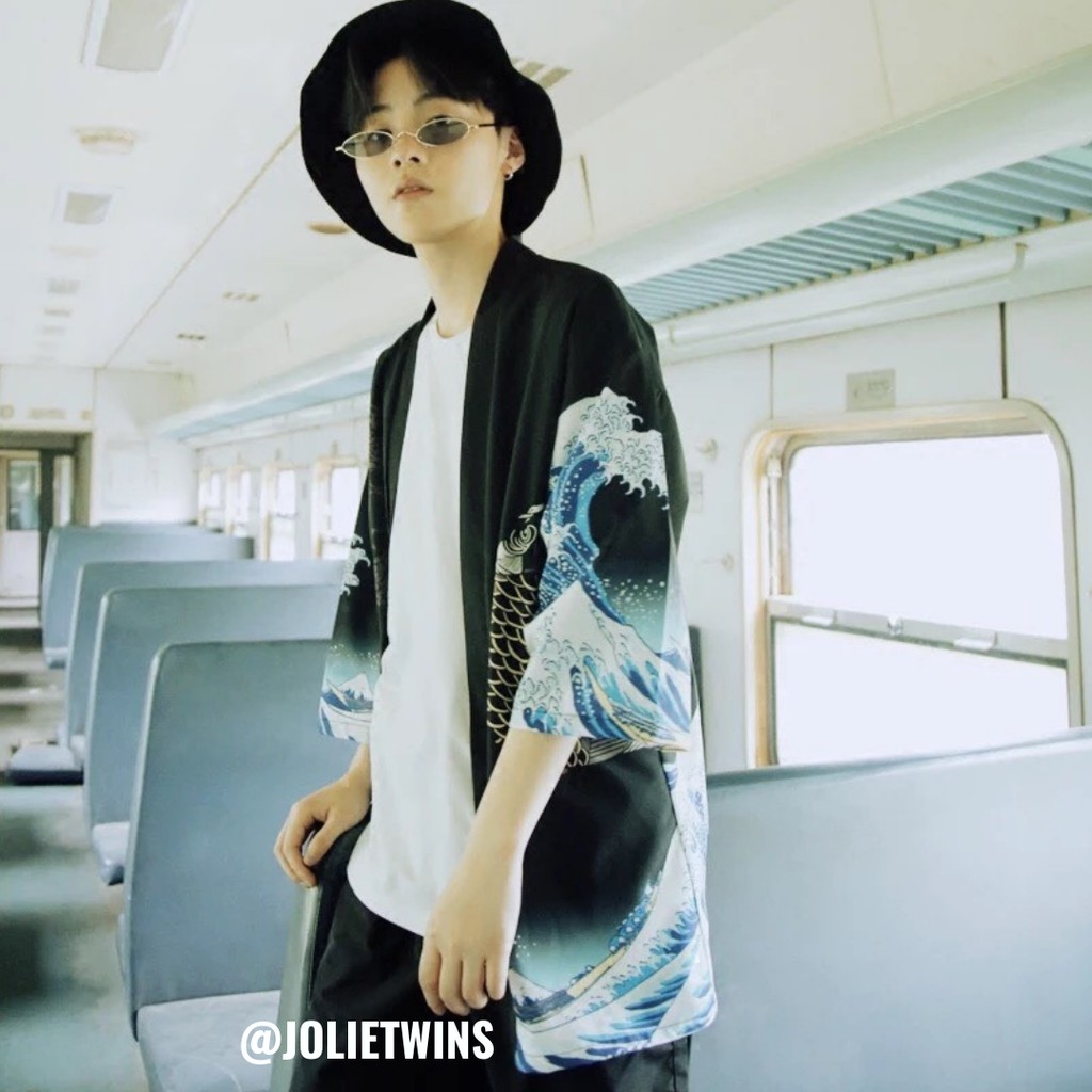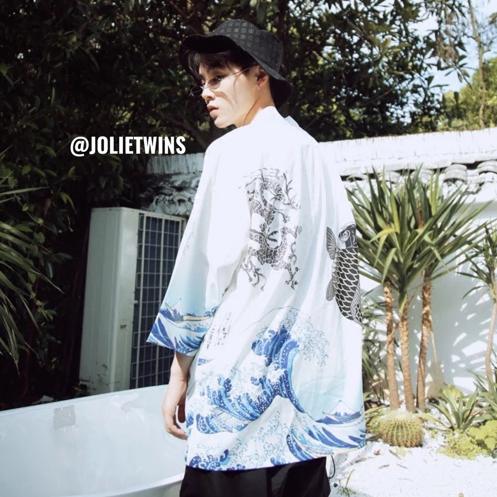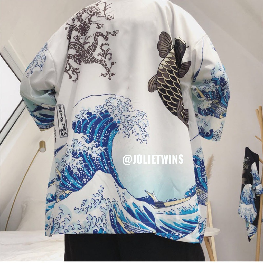 เสื้อคลุมกิโมโน สไตล์ญี่ปุ่น ลายคลื่นทะเลฟ้าน้ำเงิน ตัวนี้ใส่แล้วเก๋มาก ยังสามารถกันแดดได้ด้วย (รุ่นนี สินค้ามีจำนวนจำกัด?)