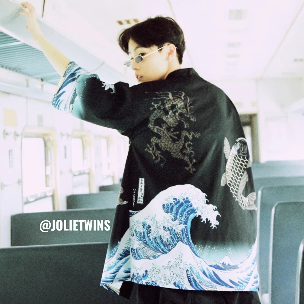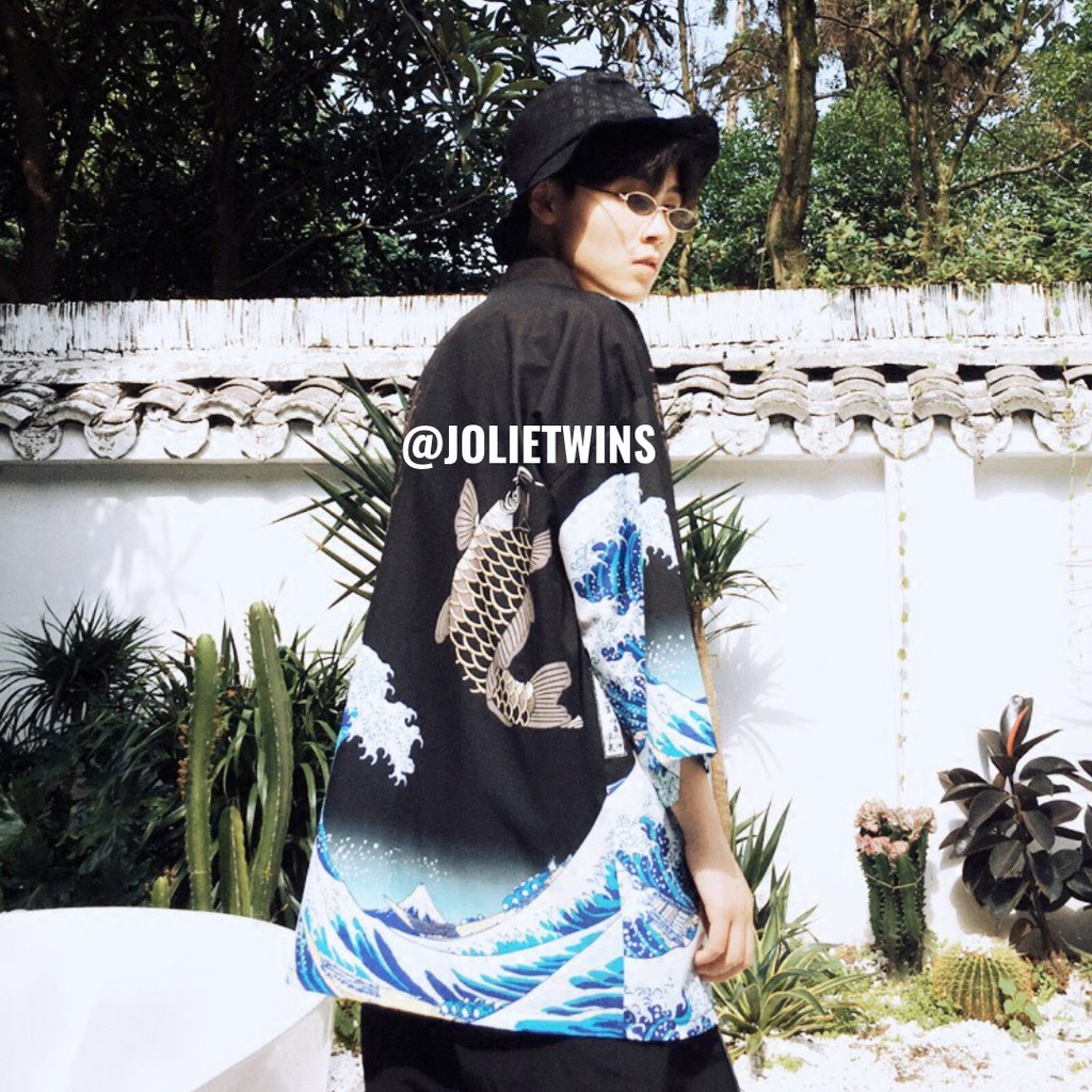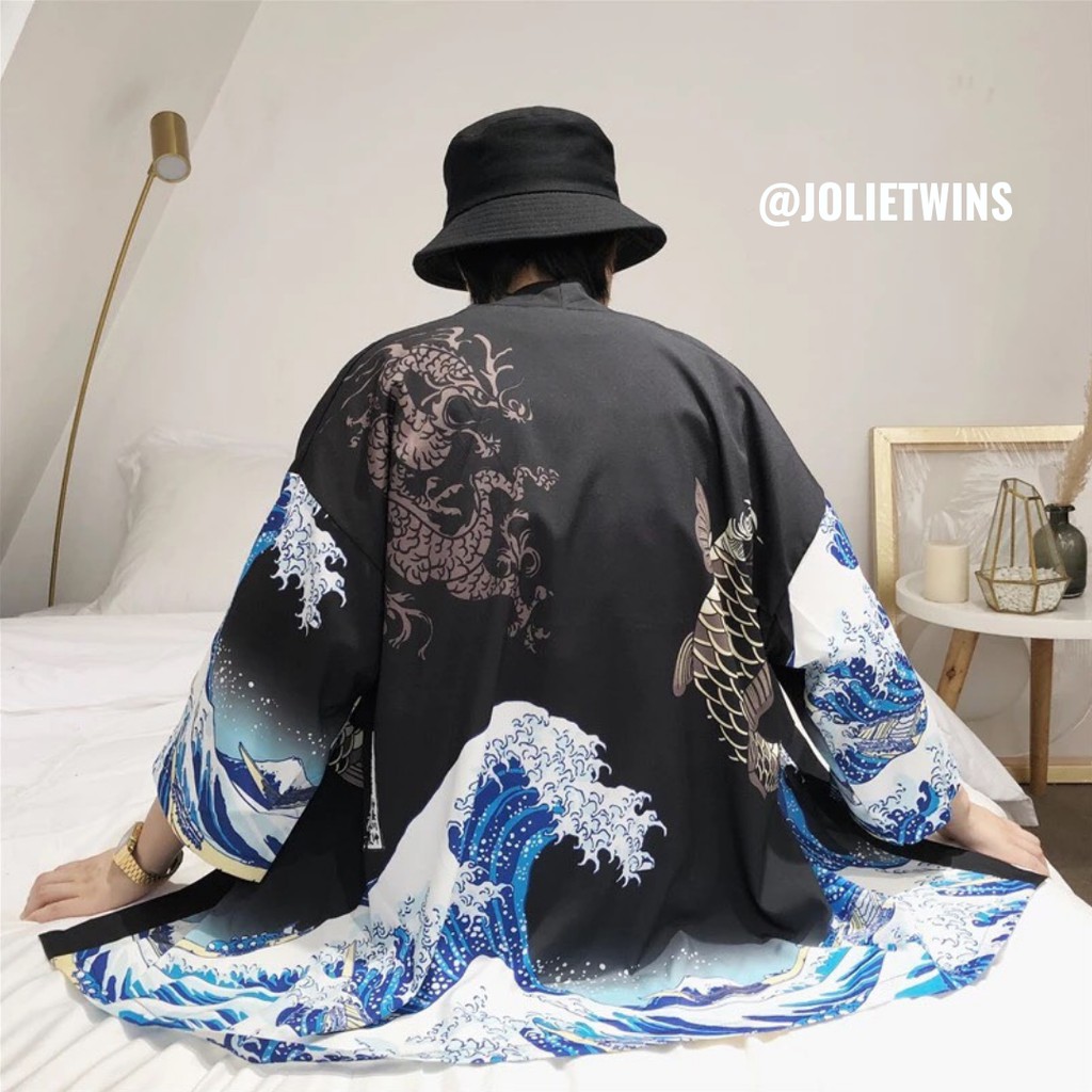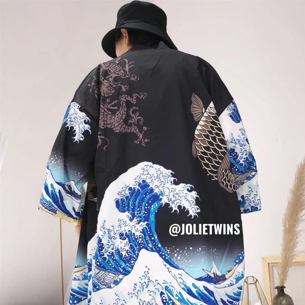 เสื้อคลุมกิโมโน สไตล์ญี่ปุ่น ลายคลื่นทะเลฟ้าน้ำเงิน ตัวนี้ใส่แล้วเก๋มาก ยังสามารถกันแดดได้ด้วย (รุ่นนี สินค้ามีจำนวนจำกัด?)