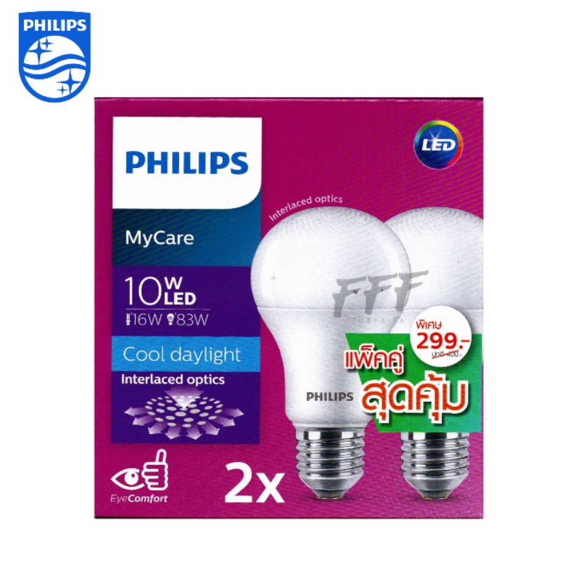 [PHILIPSแพ็คประหยัดสุดคุ้ม] หลอดไฟ PHILIPS LED bulb MyCare 10W E27 Daylight แพ็ค 2 หลอด