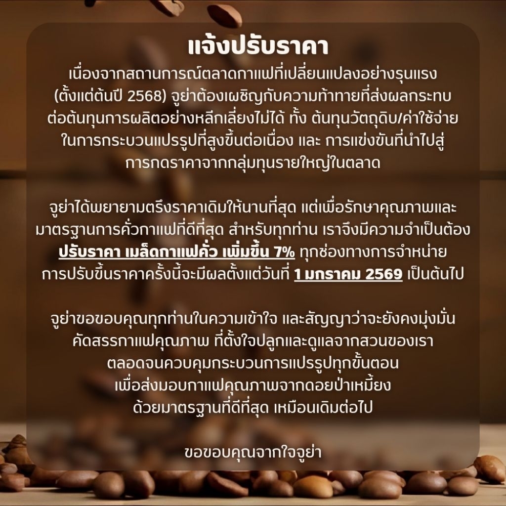 JUYA Coffee • เมล็ดกาแฟคั่วอาราบิก้า 100%