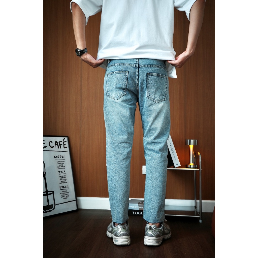 HIMSELF Slim Fit Cropped Jeans ยีนส์ทรงกระบอกเล็ก กึ่งเดฟ รุ่นปลายขาเต่อ