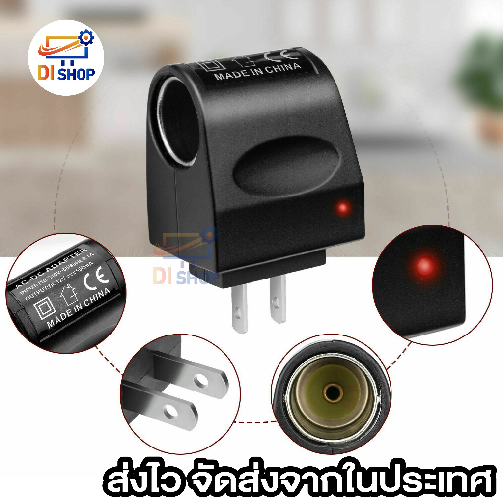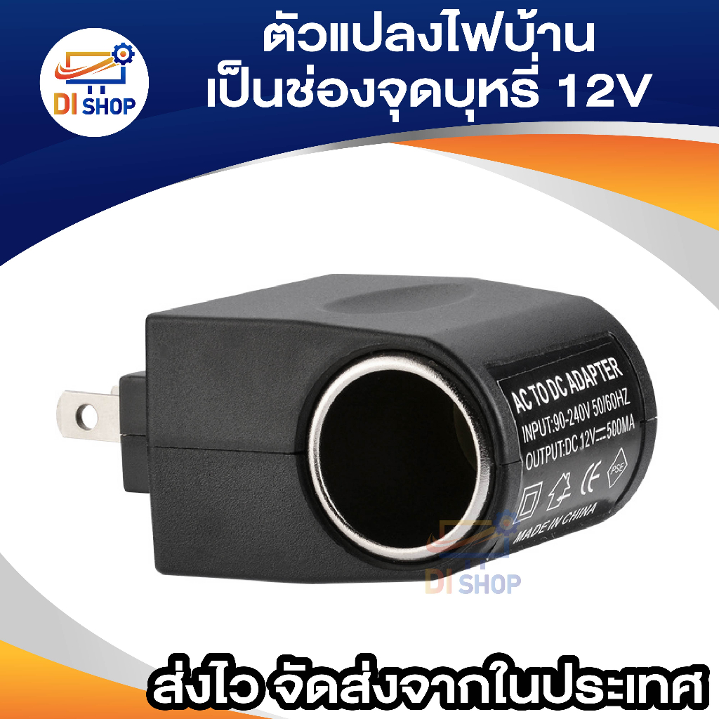 DC ตัวแปลงไฟบ้าน ให้เป็นไฟ 12V DC 500 Mah แบบที่จุดบุหรี่ในรถยนต์ (สีดำ)
